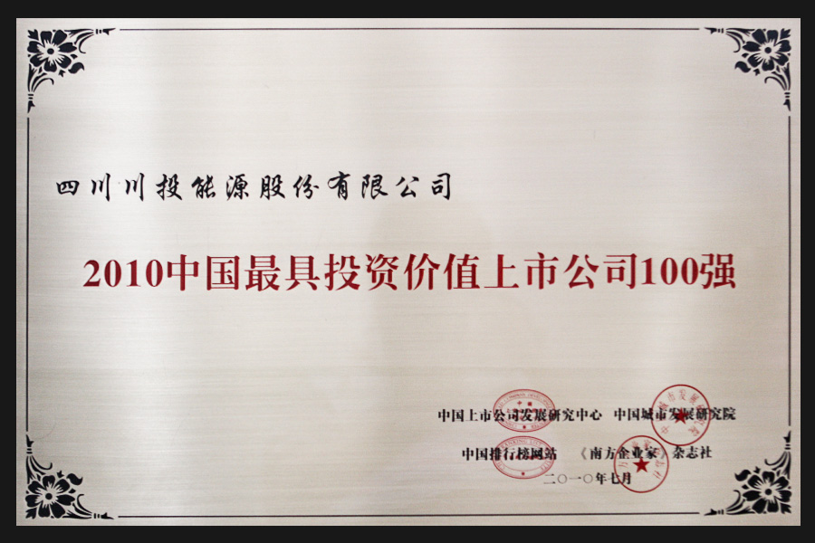 近年來,川投能源備受資本市場和社會各界青睞,連續(xù)入選滬深300指數(shù)樣本股、中證800指數(shù)樣本股、上證380指數(shù)樣本股、MSCI新興市場指數(shù)、MSCI ACWI全球指數(shù),同時作為首批中國A股股票納入富時全球股票指數(shù)系列和標普新興市場全球基準指數(shù);先后獲得“中國證券市場年會金鳳凰獎”、“中國上市公司市值管理百家優(yōu)秀公司”、“最守誠信上市公司”、“最具投資價值上市公司”、《上海證券報》“公司治理資本創(chuàng)新公司獎”等榮譽;獲得中華全國總工會授予的“抗震救災恢復重建工人先鋒號”、“全國汶川地震災后恢復重建先進集體”;1998—2011年連續(xù)13年獲得“四川省重合同守信用先進單位”稱號;2011年8月,榮獲“全國模范勞動關(guān)系和諧企業(yè)”稱號;2011年11月,在《每日經(jīng)濟新聞報》聯(lián)合多家媒體和116家機構(gòu)評委傾力打造的全國上市公司“口碑榜”評選中,被代表市場2萬億元資金的廣大投資者評選為“最具成長潛力上市公司”;2011年12月,榮獲上海證券交易所評選的中國公司治理最高榮譽——“2011年度董事會獎提名獎”、“2011年度典型并購重組案例獎提名獎”;2012年9月,川投能源黨委榮獲“全省創(chuàng)先爭優(yōu)先進基層黨組織”稱號; 2015年公司還獲得了由中國上市公司協(xié)會、中國證券投資者保護基金公司、上海證券交易所、深圳證券交易所、中國證券業(yè)協(xié)會、中國證券投資基金業(yè)協(xié)會聯(lián)合頒發(fā)的“2015中國最受投資者尊重的上市公司”入圍獎。2022年6月,入選中國上市公司協(xié)會“2021年度A股上市公司現(xiàn)金分紅榜單豐厚回報榜”;2023年11月獲得中國證券報頒發(fā)的“第二十五屆上市公司金牛獎·2022年度金信披獎”;2024年10月被證券時報評選為“主板上市公司價值100強”。主體信用等級長期維持AAA,以優(yōu)良的業(yè)績持續(xù)回報投資人,受到國內(nèi)國際兩個市場的高度關(guān)注和價值認可。