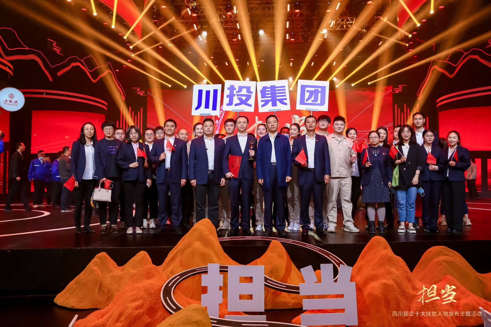 觀眾席上,28名川投能源員工手握國旗,整齊劃一地排座成一個(gè)醒目的企業(yè)方陣,在發(fā)布會(huì)場上,在脫貧攻堅(jiān)的主戰(zhàn)場上,更在鄉(xiāng)村振興的新戰(zhàn)場上,高揚(yáng)企業(yè)大旗、彰顯國企擔(dān)當(dāng)。活動(dòng)結(jié)束后,川投集團(tuán)黨委副書記、董事鄧凱、黨群工作部部長張碧波同川投能源演職人員合影留念。