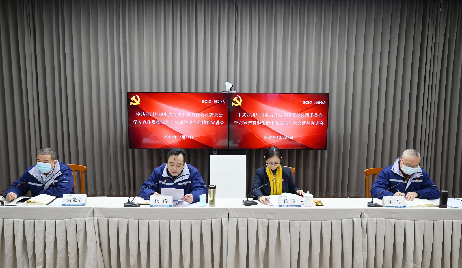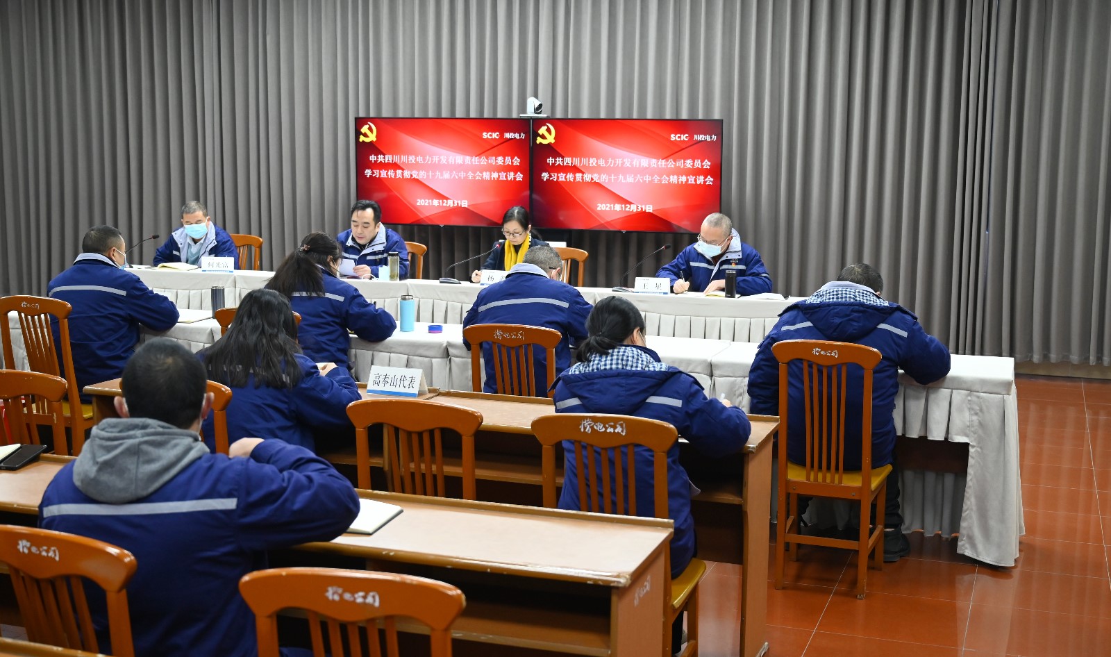 2021年12月31日,川投電力公司黨委在洪雅槽漁灘公司召開“學(xué)習(xí)宣傳貫徹黨的十九屆六中全會(huì)精神宣講會(huì)”。川投電力黨委書記、董事長楊濤在會(huì)上就十九屆六中全會(huì)精神作了專題宣講;宣講會(huì)由川投電力黨委副書記楊鑫主持。