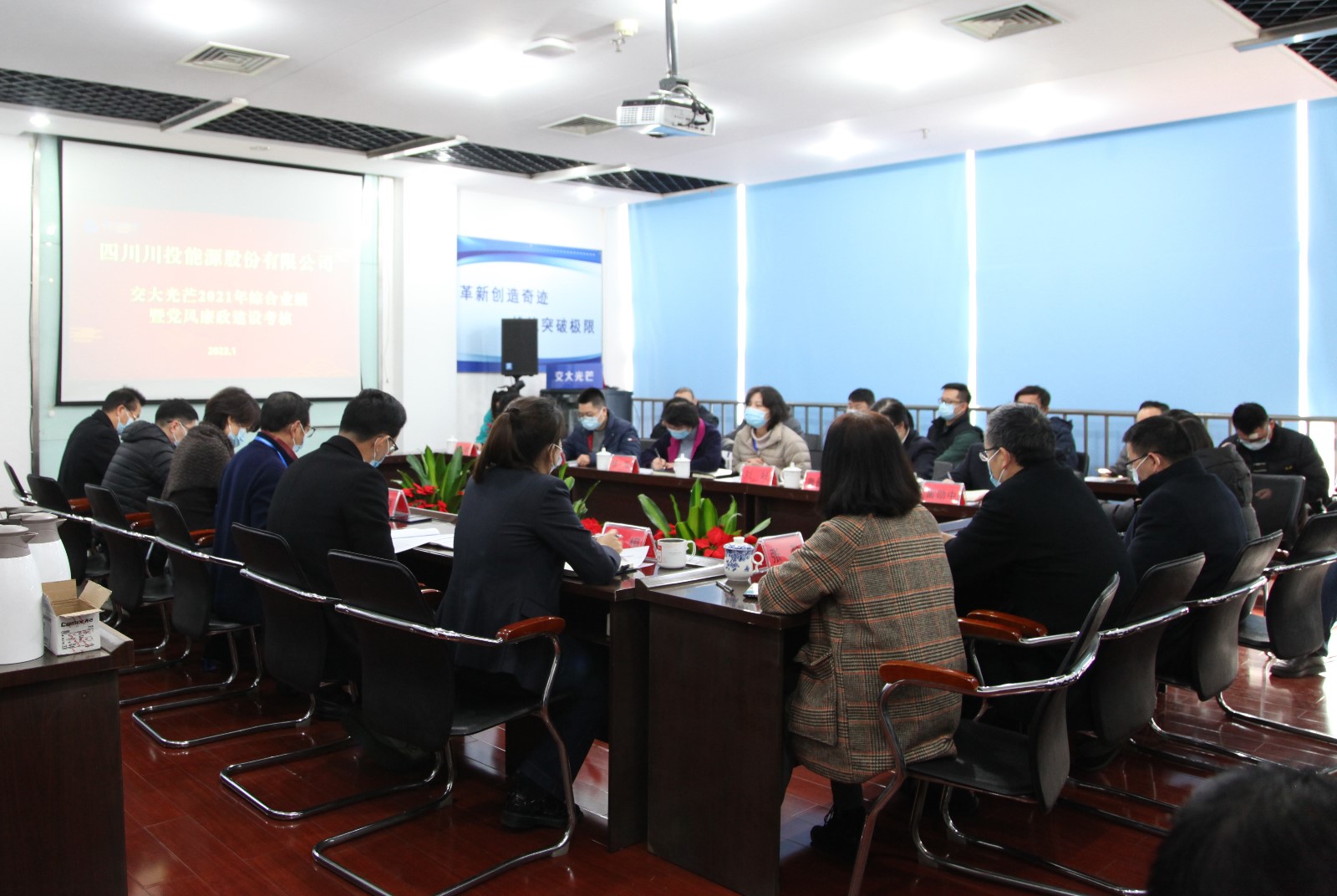 根據(jù)川投能源2021年度考核工作的統(tǒng)一部署,1月11日,川投能源黨委委員、財(cái)務(wù)總監(jiān)、考核組長(zhǎng)劉好率隊(duì)赴交大光芒開展2021年度綜合業(yè)績(jī)暨黨風(fēng)廉政建設(shè)考核工作。川投能源考核組、交大光芒經(jīng)營班子、中層副職以上管理人員及一線員工代表參加考核會(huì),川投能源證券事務(wù)部、資本運(yùn)營部經(jīng)理魯晉川主持會(huì)議。