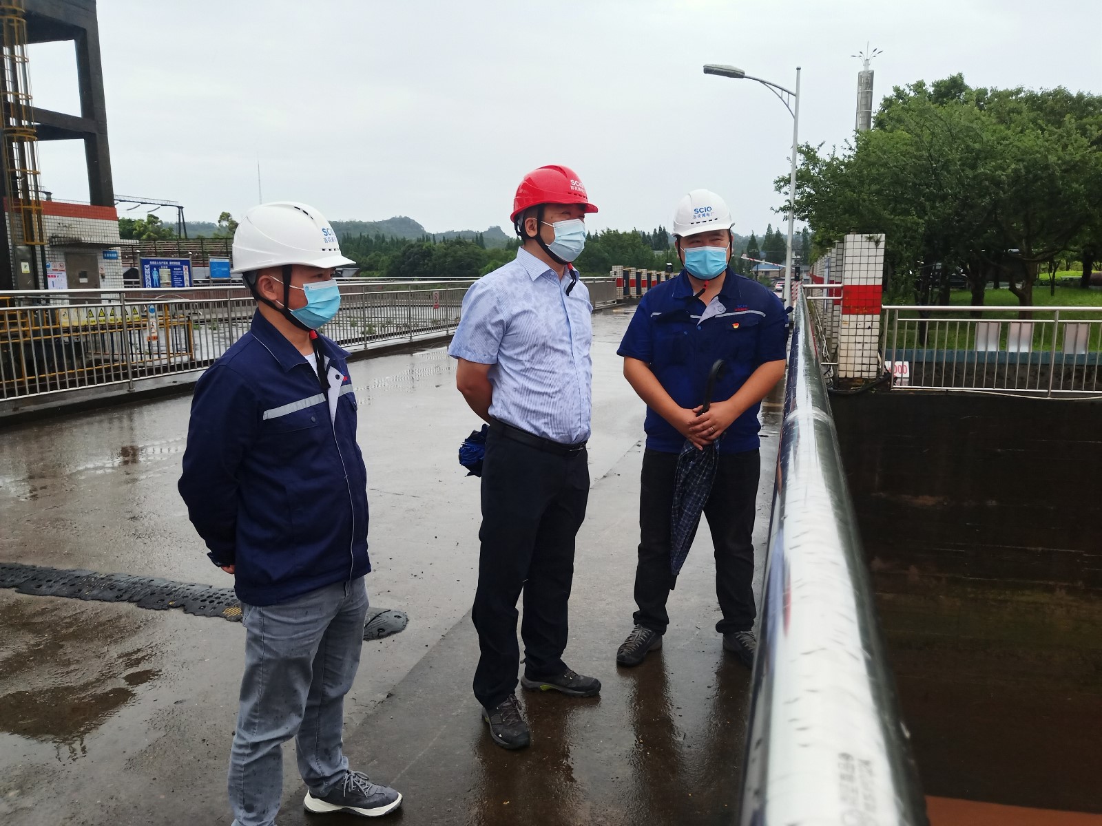 23日,洪雅縣遭遇強(qiáng)降雨,百花灘電廠上游來水流量最高達(dá)6600m3/s。楊濤冒雨到電廠大壩觀察水情,詳細(xì)了解水位監(jiān)測(cè)、防汛物資準(zhǔn)備及應(yīng)急預(yù)案制定等方面的情況,聽取電廠負(fù)責(zé)人關(guān)于防汛準(zhǔn)備工作開展情況的匯報(bào),看望慰問一線防汛值守人員。