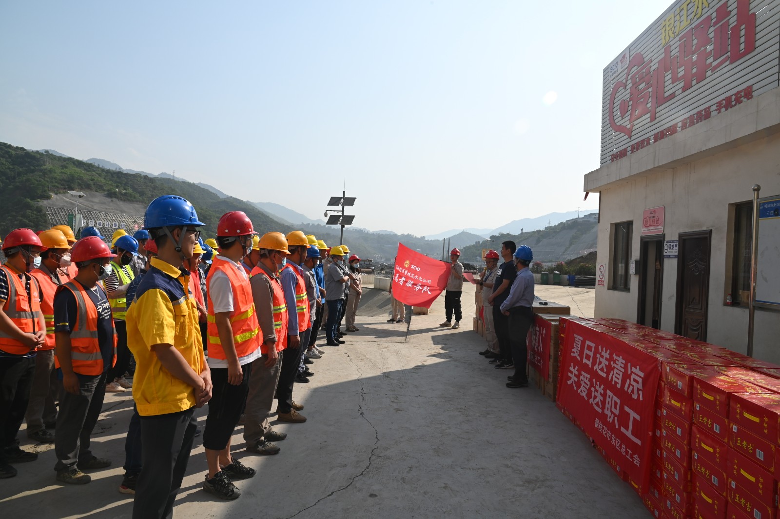 連日來,攀枝花持續(xù)高溫,氣溫屢屢突破34℃高溫,7月8日上午,為切實(shí)維護(hù)銀江水電站一線工作者身體健康和合法利益,把關(guān)懷送到每一位工友身邊,攀枝花市東區(qū)總工會(huì)赴銀江水電站工地開展送清涼慰問活動(dòng),東區(qū)總工會(huì)維權(quán)工作部部長劉欣,長江設(shè)計(jì)集團(tuán)銀江項(xiàng)目常務(wù)副經(jīng)理、設(shè)總、設(shè)代處長汪慶元,公司志愿者服務(wù)隊(duì)參加慰問,公司黨總支委員、董事會(huì)秘書、工會(huì)主席鄧勇主持活動(dòng)。