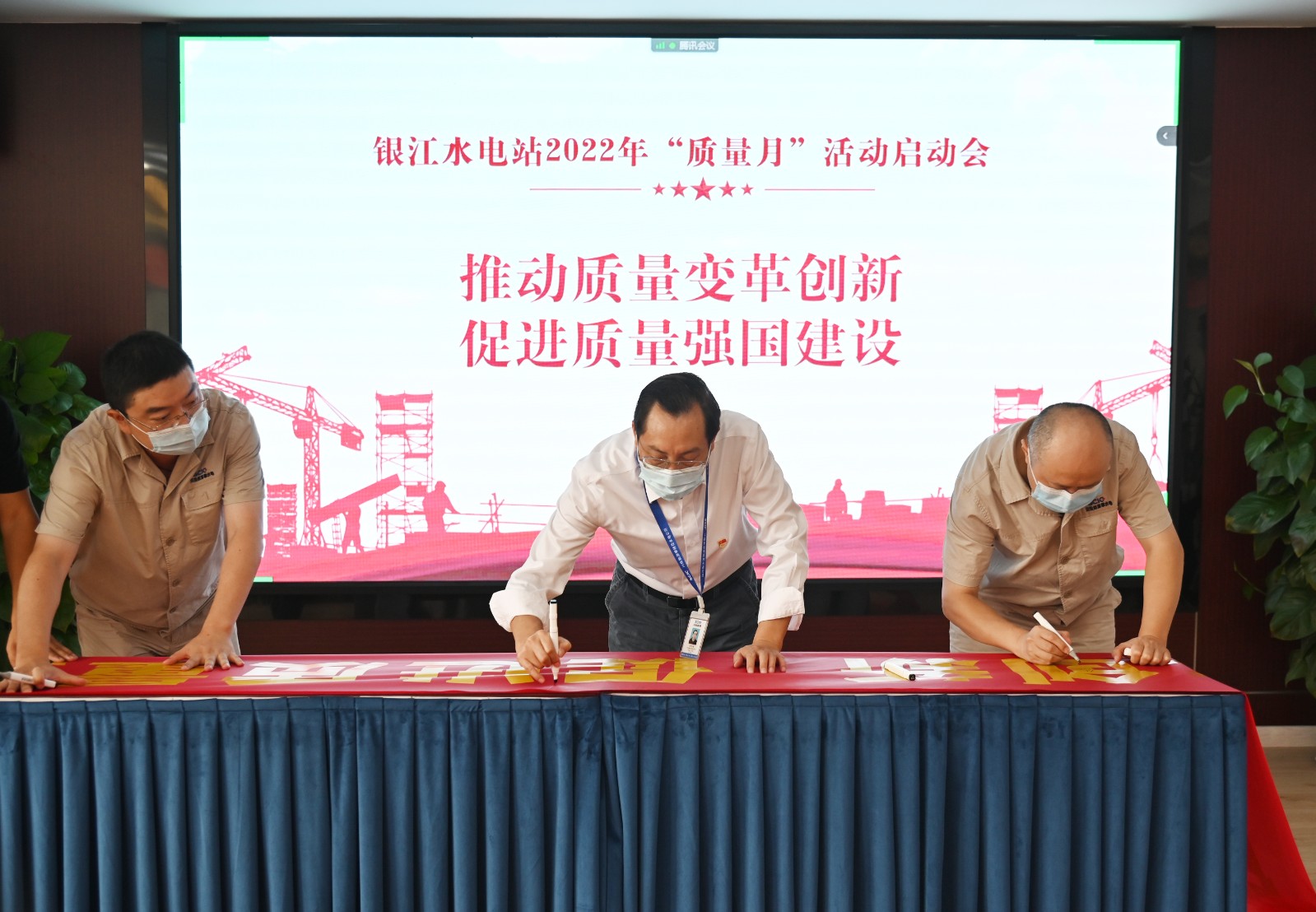 為積極響應(yīng)國家“質(zhì)量月”活動(dòng)號(hào)召,努力增強(qiáng)全員質(zhì)量責(zé)任意識(shí),9月3日,公司組織召開銀江水電站2022年“質(zhì)量月”活動(dòng)啟動(dòng)會(huì),會(huì)議由公司工程管理部經(jīng)理嚴(yán)瑞平主持。川投能源副總經(jīng)理、公司黨總支書記、董事長、質(zhì)委會(huì)主任徐孝剛,公司黨總支副書記、總經(jīng)理、質(zhì)委會(huì)主任吳巍嶼,公司副總經(jīng)理唐伽出席會(huì)議,公司工程管理部、長江設(shè)計(jì)代表處、各監(jiān)理部、各第三方質(zhì)量檢測中心、各施工單位項(xiàng)目部領(lǐng)導(dǎo)、質(zhì)量管理人員參加活動(dòng)。