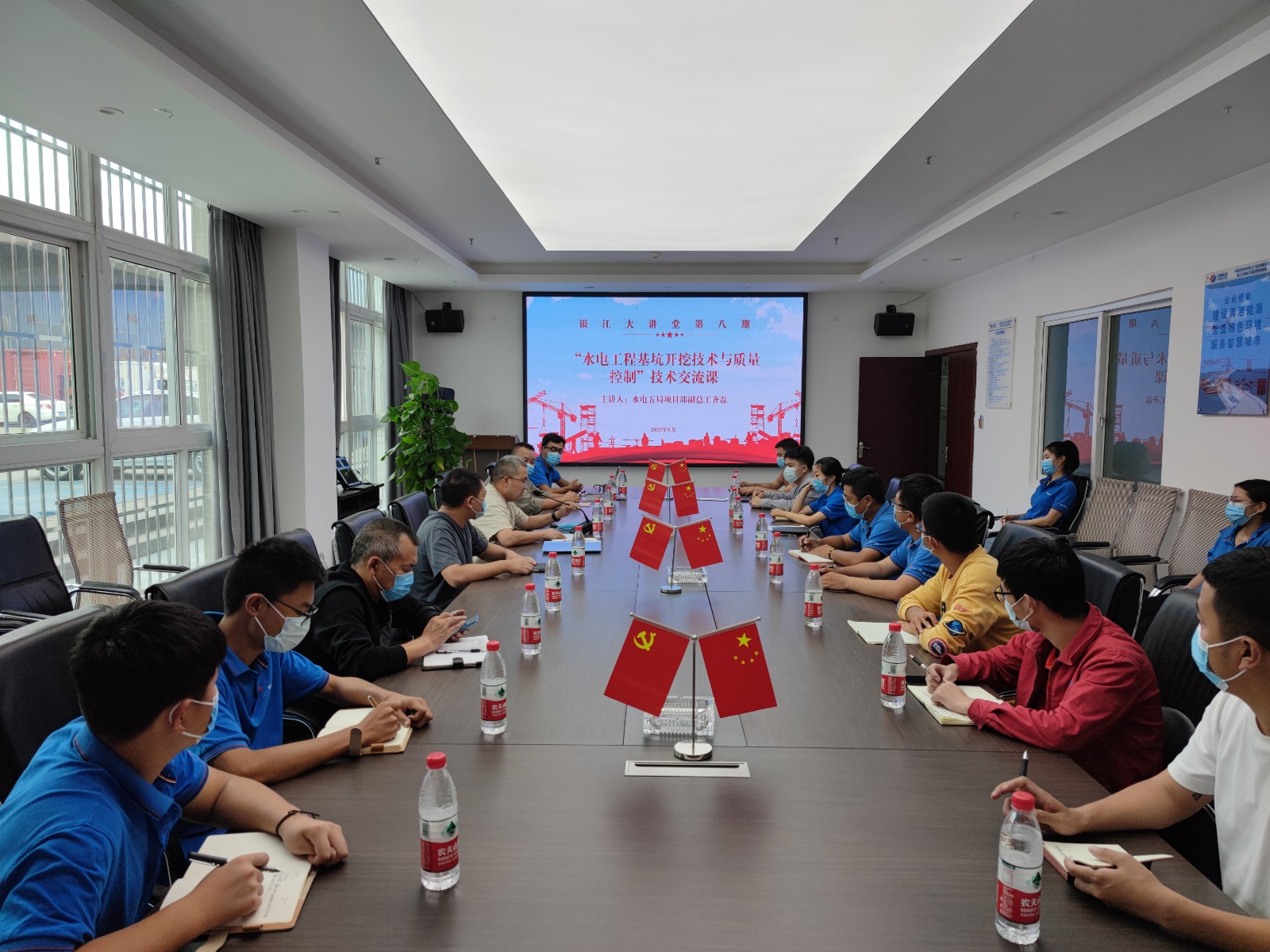 按照活動安排及疫情防控要求,公司于9月24日利用銀江大講堂的舞臺,邀請水電五局項目部副總工齊磊,給各參建單位相關(guān)人員開展了“水電工程基坑開挖技術(shù)與質(zhì)量控制”技術(shù)交流,從基坑開挖技術(shù)與質(zhì)量控制兩個方面,詳細講解了機械破巖、爆破破巖的方法及其適用條件和優(yōu)缺點,并從現(xiàn)場質(zhì)量控制出發(fā),講解了質(zhì)量要點和質(zhì)量驗收控制重點。在交流課的最后,齊磊結(jié)合基坑的工程特點和地質(zhì)情況,分析了創(chuàng)建邊坡樣板工程的重點和難點,各參建單位就如何提高工程質(zhì)量及創(chuàng)建樣板工程進行了充分討論,提出了若干解決辦法,并共同發(fā)出了積極爭創(chuàng)樣板工程的號召。