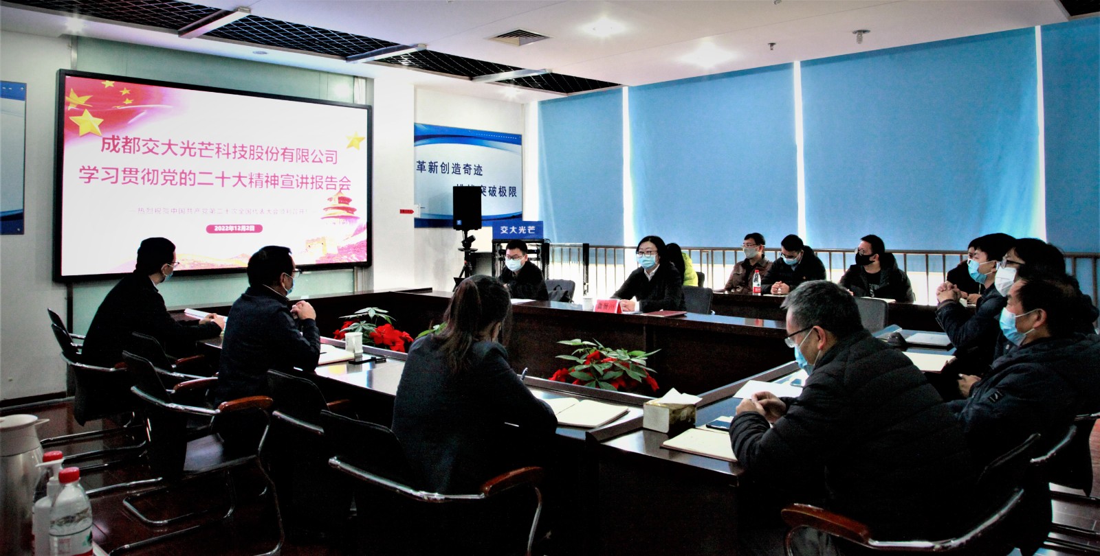 會上,劉成輝代表交大光芒領導班子作交流發(fā)言,他表示,學習宣傳貫徹黨的二十大精神是當前和今后一個時期的首要政治任務,公司黨員干部要繼續(xù)全面、系統(tǒng)、深入學習領會黨的二十大精神,爭做學習宣傳貫徹黨的二十大精神的排頭兵 ,從宣講中感悟汲取思想偉力,在既有的學習基礎上更加堅持扎實學、原本讀、認真悟,將二十大精神轉化為推動各方面工作的實際行動。要從黨的二十大精神中找準方向和定位,堅定發(fā)展信心,搶抓政策機遇,加快“科創(chuàng)光芒”黨建品牌培育,加大公司研發(fā)費用的投入力度、技術研發(fā)的創(chuàng)新力度、人才的引進力度,加快成果轉化速度,打牢企業(yè)創(chuàng)新基礎,努力融入高質量發(fā)展大局,推動公司高端化、智能化、綠色化發(fā)展,為建設國家軌道交通事業(yè)作出新的更大貢獻。