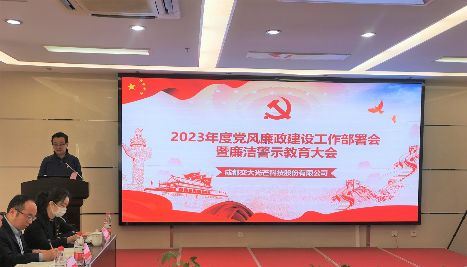 為進一步貫徹落實黨的二十大關(guān)于全面從嚴治黨戰(zhàn)略部署,深入推進公司黨風(fēng)廉政和反腐敗工作。2月3日,交大光芒召開2023年度黨風(fēng)廉政建設(shè)工作部署會暨廉潔警示教育大會,公司領(lǐng)導(dǎo)班子成員、中層副職以上管理人員、黨員參加會議。公司黨總支書記、總經(jīng)理劉成輝主持會議并作廉潔警示談話。