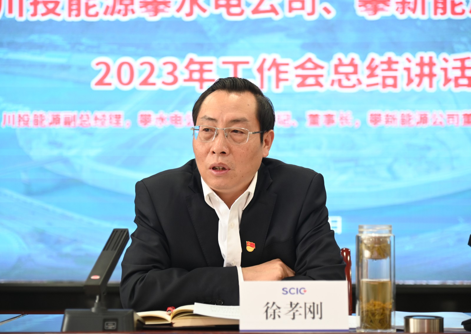 川投能源副總經(jīng)理,攀水電公司黨總支書記、董事長,攀新能源公司董事長徐孝剛作了題為《踔厲奮發(fā)踏征程,鉚足干勁拼發(fā)展》的主題講話。他表示:2022年是銀江水電站全面進(jìn)入主體工程施工的關(guān)鍵之年和攀新能源公司新能源快速發(fā)展的突破之年,攀水電公司團(tuán)結(jié)帶領(lǐng)各參建單位,連續(xù)克服新冠疫情多發(fā)、地質(zhì)條件復(fù)雜、砂石骨料短缺等各種影響,精心謀劃施工組織,合理調(diào)配施工資源,組織開展“決戰(zhàn)四季度、大干一百天,力爭提前完成二期基坑開挖,加快主體工程施工,獻(xiàn)禮二十大”等勞動競賽,確保了銀江水電站工程建設(shè)高效有序推進(jìn)和公司各項(xiàng)年度目標(biāo)任務(wù)順利完成。攀新能源公司成功收購了廣西農(nóng)光公司51%控股權(quán),實(shí)現(xiàn)了新能源光伏大型控股項(xiàng)目的重大“破冰”;完成了攀枝花郵處中心首個自主開發(fā)新能源項(xiàng)目的建設(shè)投運(yùn),實(shí)現(xiàn)了分布式光伏項(xiàng)目從“0”到“1”的關(guān)鍵性突破;有力推動了攀新能源公司快速高質(zhì)量發(fā)展。