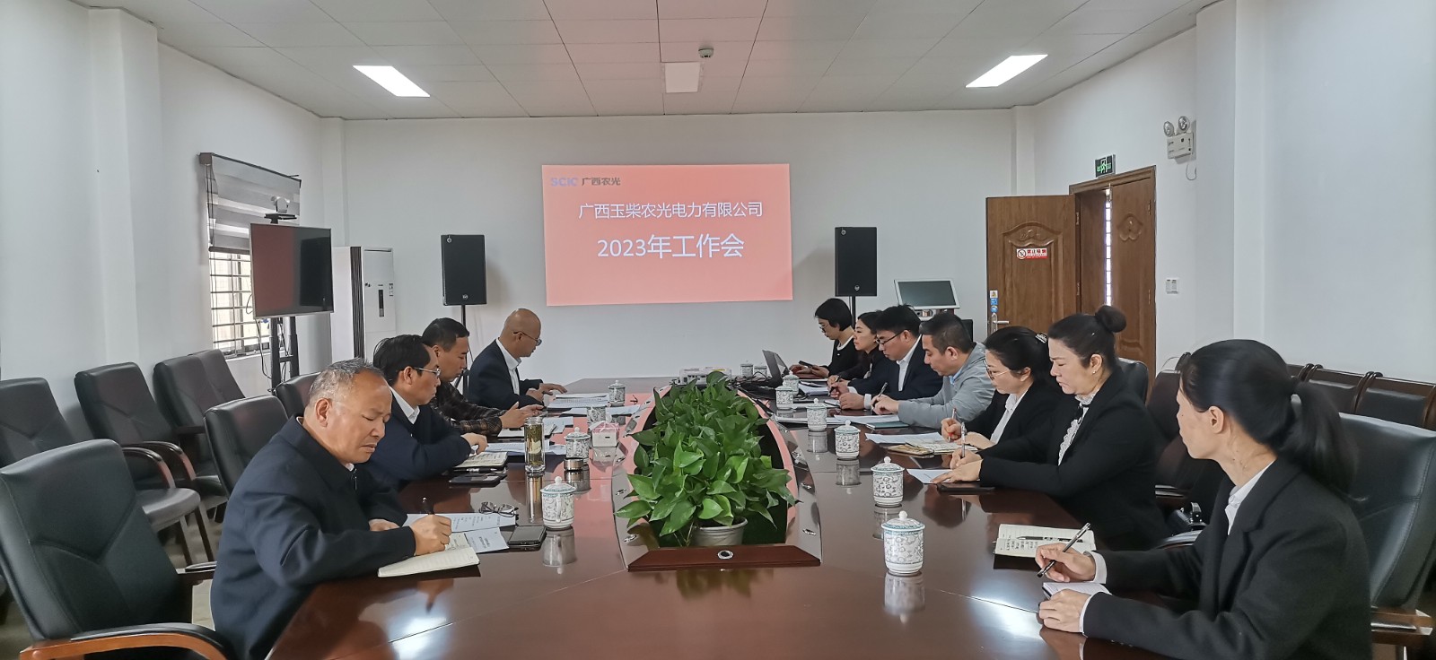 隨后,徐孝剛一行在桂平光伏電站升壓站二樓會(huì)議室召開(kāi)了廣西農(nóng)光公司2023年工作會(huì),會(huì)議由攀新能源公司公司、廣西農(nóng)光公司財(cái)務(wù)總監(jiān)王俊森主持,公司全體員工(兼職)、運(yùn)維單位代表參加會(huì)議。會(huì)議學(xué)習(xí)傳達(dá)了川投集團(tuán)、川投能源、攀新能源公司2023年工作會(huì)精神;覃鳳荏作了廣西農(nóng)光公司《2022年工作總結(jié)及2023年工作計(jì)劃》的報(bào)告,重點(diǎn)匯報(bào)了2022年度主要指標(biāo)完成情況、主要工作舉措及成效、存在的問(wèn)題和困難以及2023年工作打算等;王俊森代表公司領(lǐng)導(dǎo)班子作廉潔從業(yè)公開(kāi)承諾;公司主要領(lǐng)導(dǎo)分別與部門(mén)代表簽訂了2023年《“雙廉”責(zé)任書(shū)》《部門(mén)目標(biāo)責(zé)任書(shū)》。