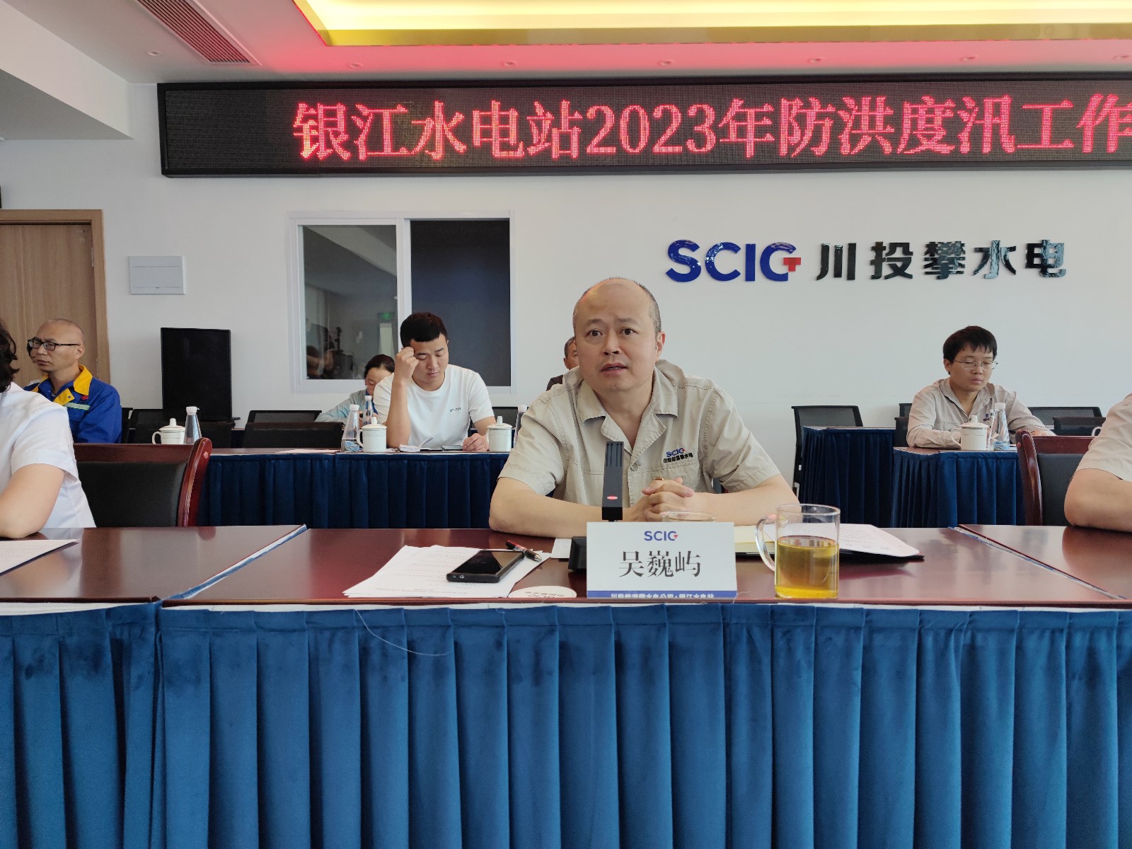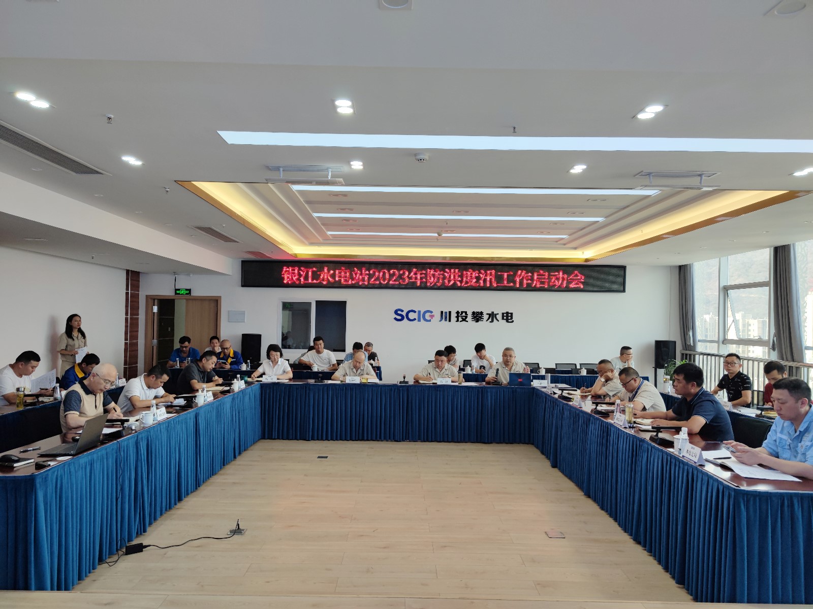 4月23日,公司組織各參建單位在2620會議室召開了銀江水電站2023年防洪度汛工作啟動會,會議由公司總經(jīng)理助理、工程管理部經(jīng)理、防汛防地災領(lǐng)導小組辦公室主任嚴瑞平主持,公司黨總支副書記、總經(jīng)理、防汛防地災領(lǐng)導小組組長吳巍嶼,公司黨總支委員、紀檢小組長、防汛防地災領(lǐng)導小組副組長楊銳等領(lǐng)導出席會議。公司工程管理部、安全環(huán)保部、征地移民部部門負責人,各參建單位項目負責人、分管生產(chǎn)、安全工作負責人參加會議。