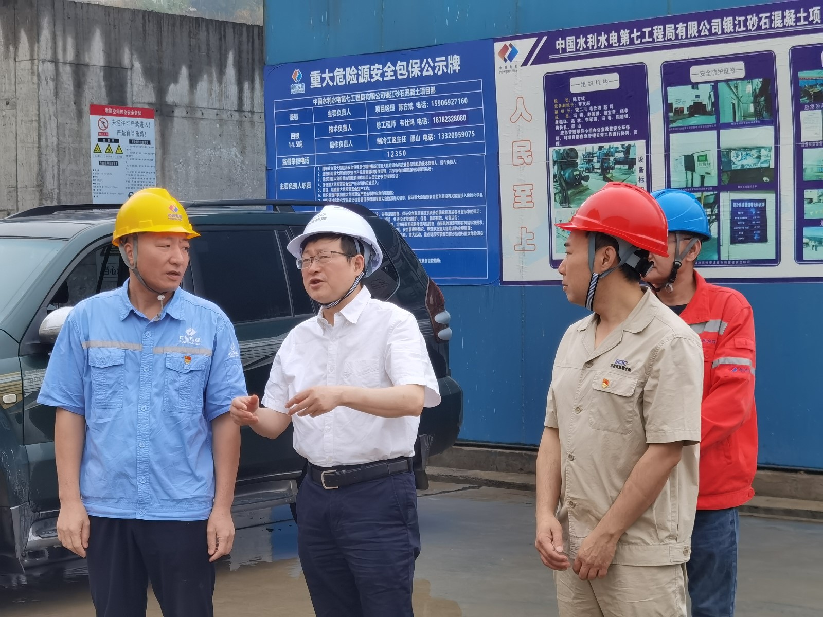 楊平一行深入銀江水電站施工現(xiàn)場,查看安全風(fēng)險管控情況,了解工程建設(shè)及安全生產(chǎn)情況,結(jié)合安全生產(chǎn)強(qiáng)化年、重大事故隱患專項排查整治、防汛減災(zāi)等工作,對現(xiàn)場液氨制冷系統(tǒng)等重點部位、重點設(shè)備、施工作業(yè)面的安全措施落實情況開展督導(dǎo)檢查。
