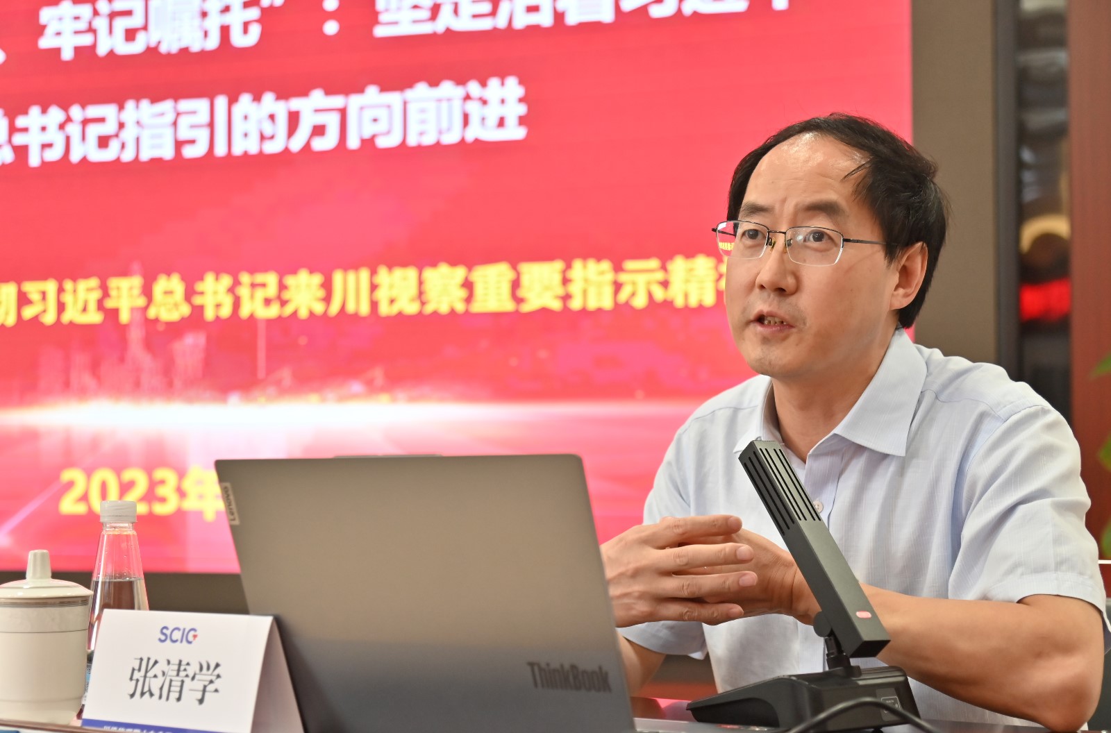 張清學(xué)結(jié)合習(xí)近平總書記三次來川視察,從11個方面深入淺出詳細(xì)講授了習(xí)近平總書記來川視察的重要指示精神,結(jié)合時政熱點,善用黨史故事,圍繞聚焦重點再發(fā)力,緊盯生態(tài)環(huán)境保護、科技創(chuàng)新和高校畢業(yè)生就業(yè)、安全生產(chǎn)、地質(zhì)災(zāi)害防治等重點工作進行講述。