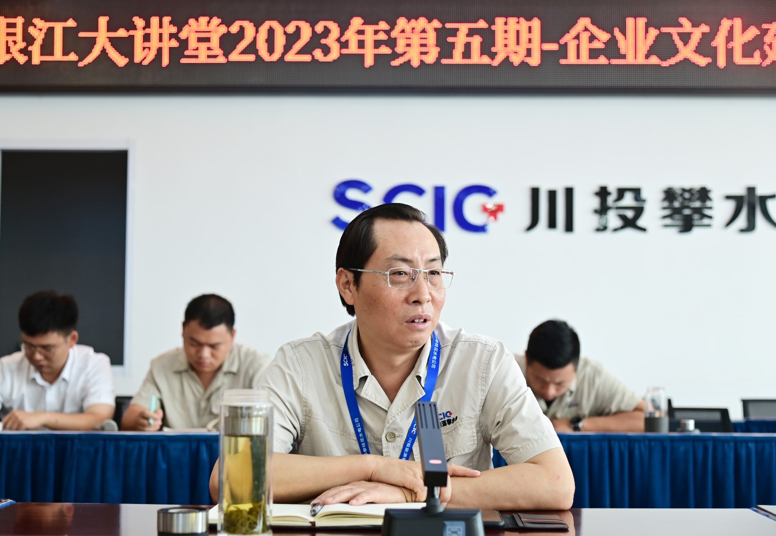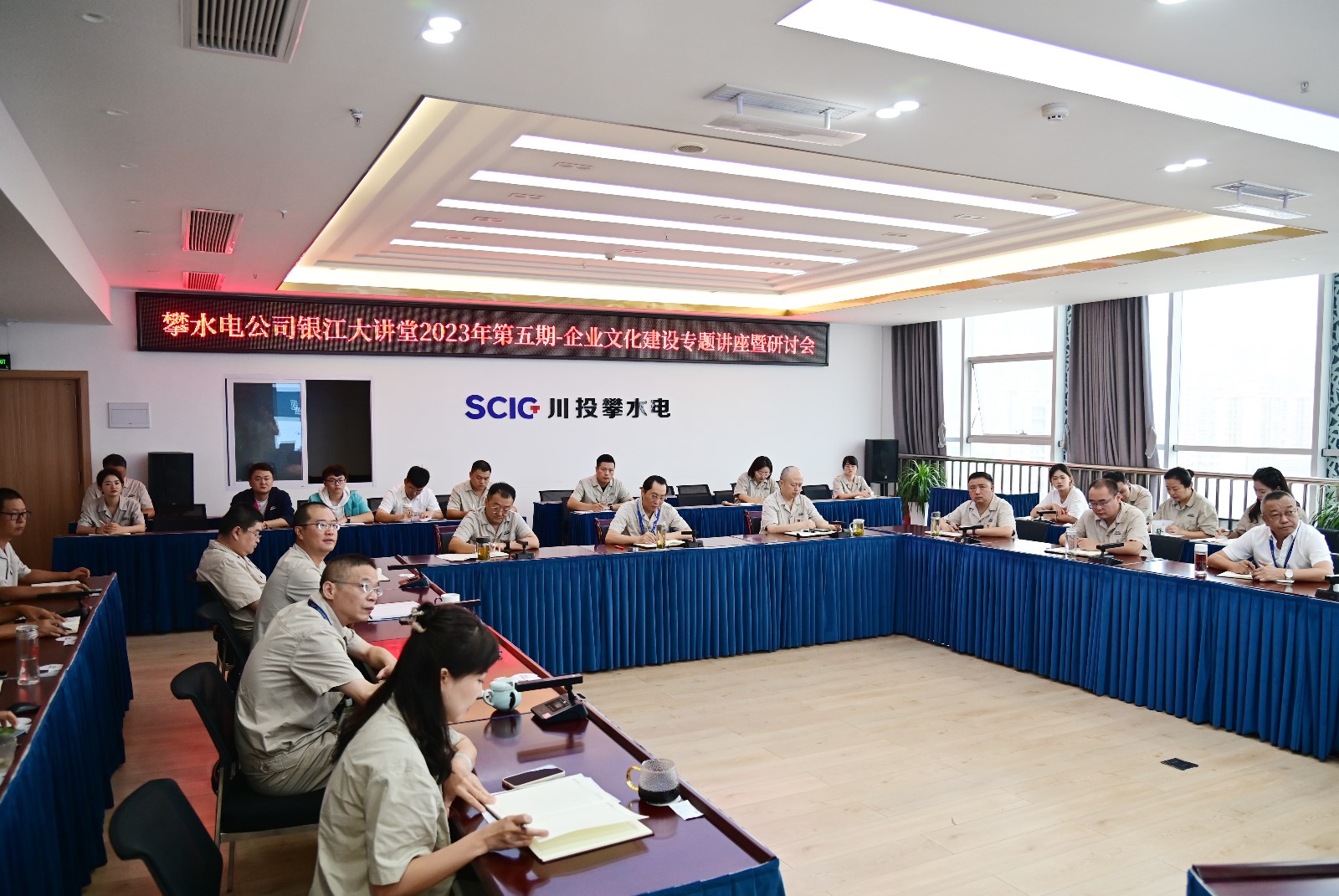 為推動(dòng)學(xué)習(xí)貫徹習(xí)近平新時(shí)代中國特色社會(huì)主義思想主題教育走深走實(shí),全面落實(shí)黨的二十大精神,堅(jiān)定文化自信,不斷適應(yīng)新時(shí)代國企文化建設(shè)的新形勢(shì)、新任務(wù)和新要求,充分發(fā)揮企業(yè)文化在推進(jìn)企業(yè)高質(zhì)量發(fā)展中的積極作用,7月30日,攀水電公司組織開展了2023年第五期銀江大講堂——企業(yè)文化建設(shè)專題講座暨研討會(huì),會(huì)議邀請(qǐng)到了四川省市場(chǎng)監(jiān)督管理學(xué)會(huì)理事、攀枝花學(xué)院經(jīng)濟(jì)與管理學(xué)院副教授顧福珍授課。川投能源副總經(jīng)理、公司黨總支書記、董事長、企業(yè)文化建設(shè)領(lǐng)導(dǎo)小組組長徐孝剛、公司在攀領(lǐng)導(dǎo)及全體員工共計(jì)40余人參加會(huì)議。