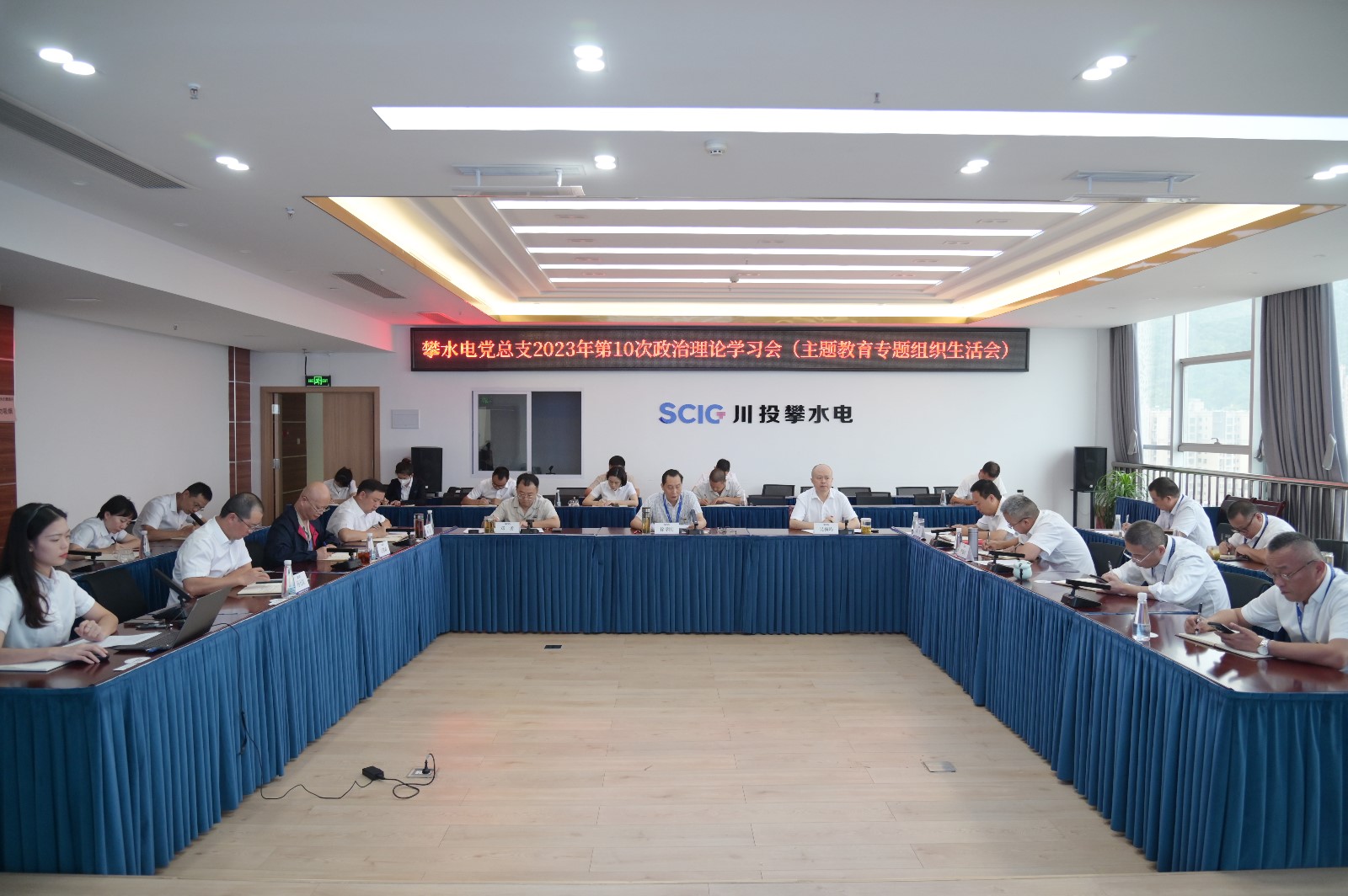 為打牢開(kāi)好主題教育專題組織生活會(huì)的思想基礎(chǔ),進(jìn)一步統(tǒng)一思想、深化認(rèn)識(shí),8月27日上午,攀水電黨總支召開(kāi)2023年第10次政治理論學(xué)習(xí)(擴(kuò)大)會(huì)議,專題學(xué)習(xí)貫徹習(xí)近平新時(shí)代中國(guó)特色社會(huì)主義思想主題教育組織生活會(huì)。公司黨總支書(shū)記、董事長(zhǎng)徐孝剛主持會(huì)議并進(jìn)行了研討發(fā)言。黨總支政治理論學(xué)習(xí)會(huì)成員、全體黨員、非黨干部、入黨積極分子共40余人參加學(xué)習(xí)。