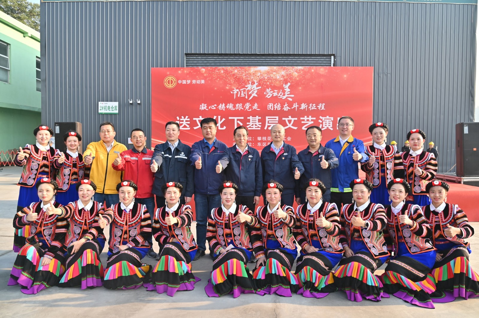 為深入學(xué)習(xí)貫徹黨的二十大精神、習(xí)近平總書記來川視察重要指示精神,11月29日上午,由攀枝花市總工會(huì)主辦,東區(qū)總工會(huì)、攀水電公司承辦的“中國夢·勞動(dòng)美——凝心鑄魂跟黨走 團(tuán)結(jié)奮斗新征程”2023年“送文化下基層”文藝演出在銀江水電站工地火熱開展。川投能源副總經(jīng)理,攀水電公司黨總支書記、董事長徐孝剛出席活動(dòng),攀枝花市總工會(huì)、東區(qū)總工會(huì)、攀水電公司及參建單位200余人參加。