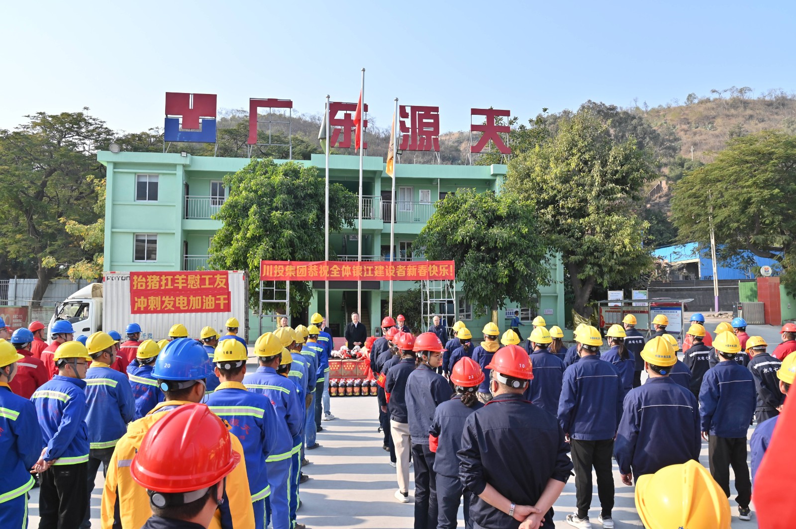 隨后,按照川投集團黨委統(tǒng)一部署,對攀水電公司及銀江水電站參建單位一線員工800余人致以新春祝福,并為大家送上整豬整羊、食用油等慰問物資,鼓勵大家為沖刺蓄水發(fā)電目標加油干。
