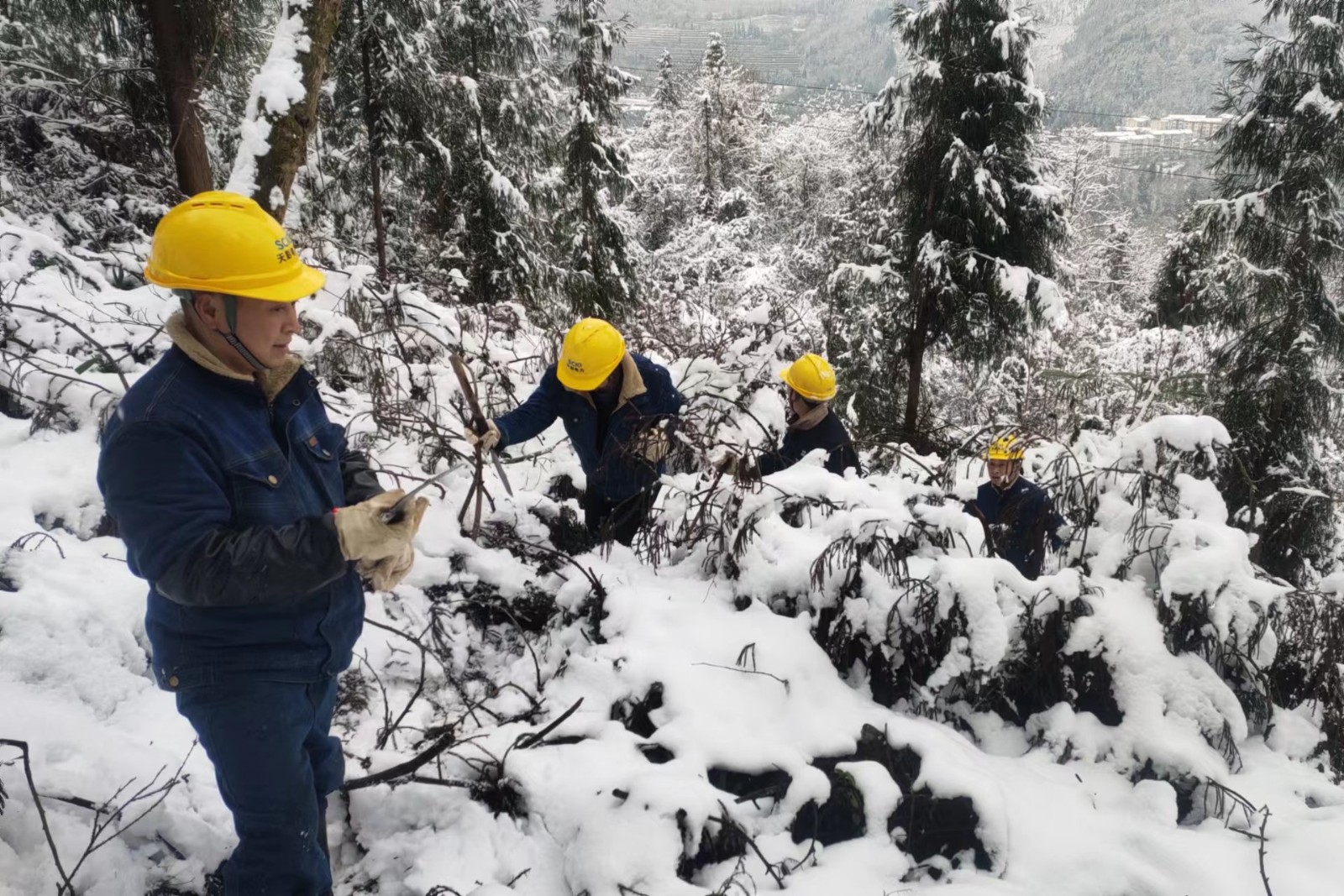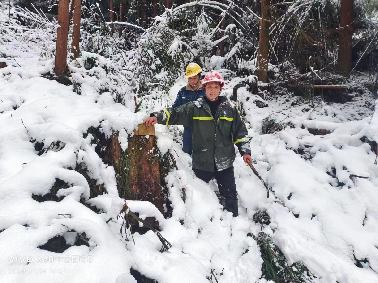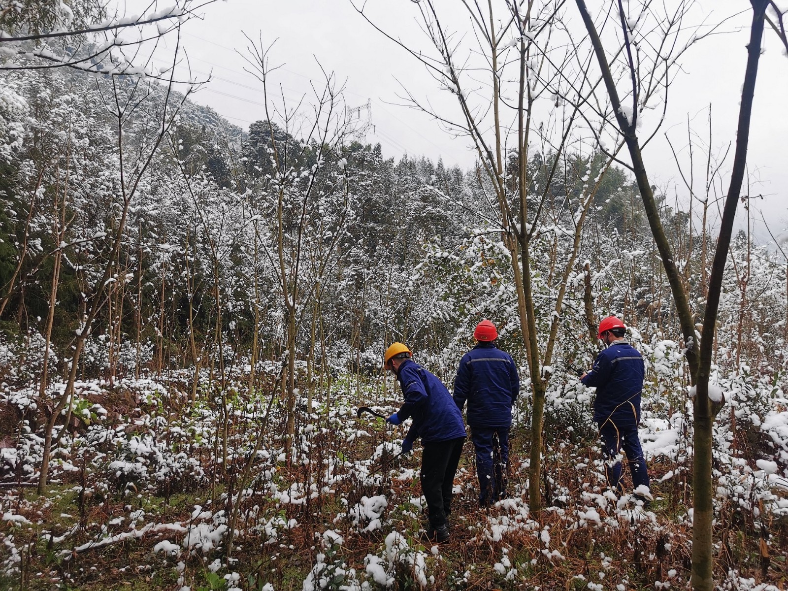 1月23日,天彭電力制定詳細的樹障清理計劃。巡線員手持砍刀,翻山越嶺,負重前行,踩著嘎吱作響的積雪,迎著刀割般的寒風,迅速開始對110kV鳳回線、10kV沙橋線、鳳通線等線路設備進行巡查,對倒伏在線路的竹樹進行“圍剿”,共清理樹枝、竹子共110余棵,現(xiàn)場巡線員盡管臉凍得通紅、手凍得僵硬、腳凍得麻木,仍有條不紊地開展工作,經(jīng)過一天的辛勤巡檢,線路和設備均運行正常。