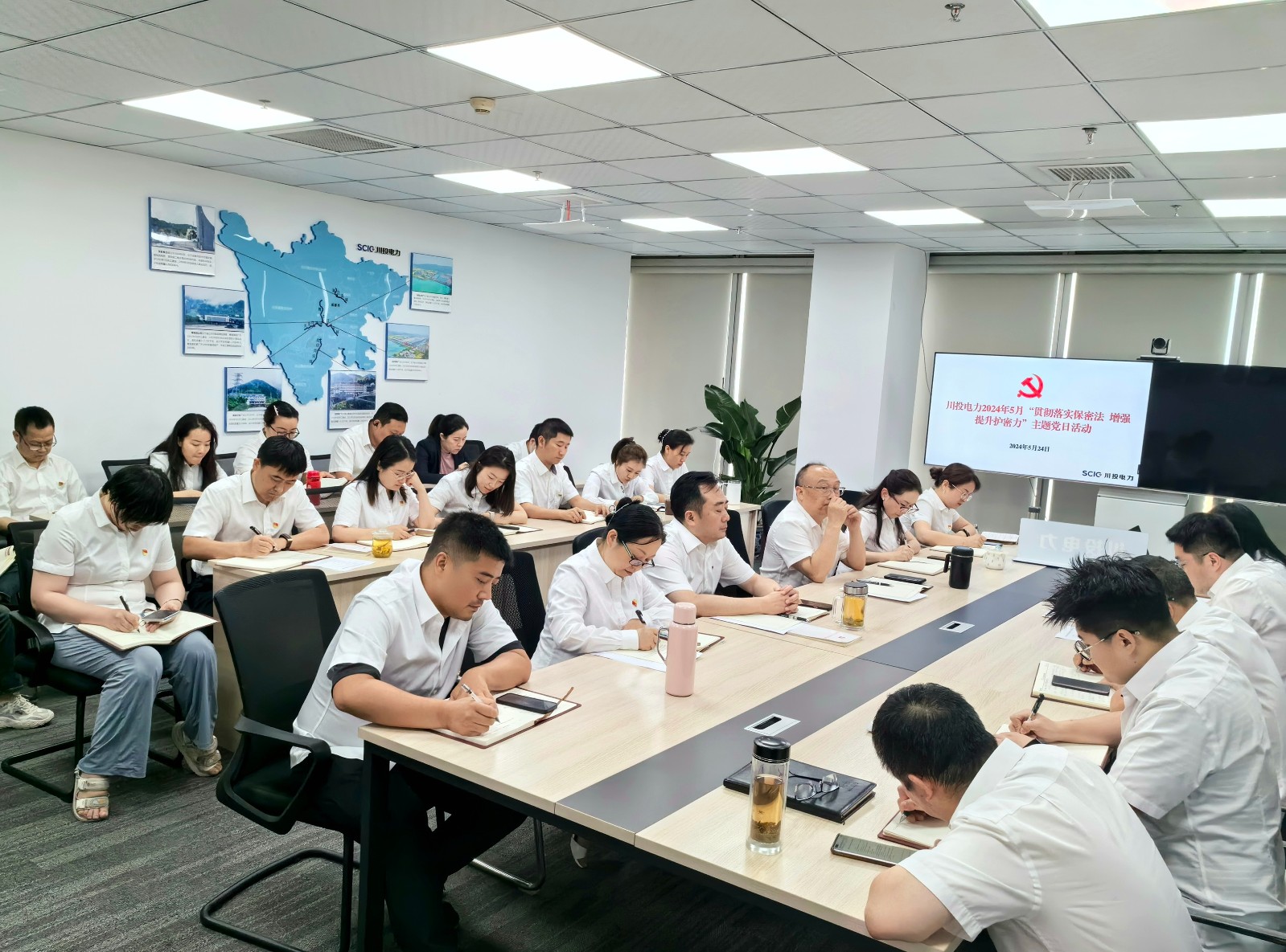 為貫徹落實(shí)黨中央關(guān)于加強(qiáng)和改進(jìn)保密工作的決策部署,深入傳達(dá)落實(shí)習(xí)近平總書記就保密工作作出的一系列重要指示批示精神,5月24日,川投電力機(jī)關(guān)黨支部召開5月“貫徹落實(shí)保密法 增強(qiáng)提升護(hù)密力”主題黨日活動(dòng),并結(jié)合黨紀(jì)學(xué)習(xí)教育開展專題學(xué)習(xí)研討。會(huì)議由支部書記李天宏主持,支部全體黨員、入黨積極分子、民主黨派人士參加會(huì)議。