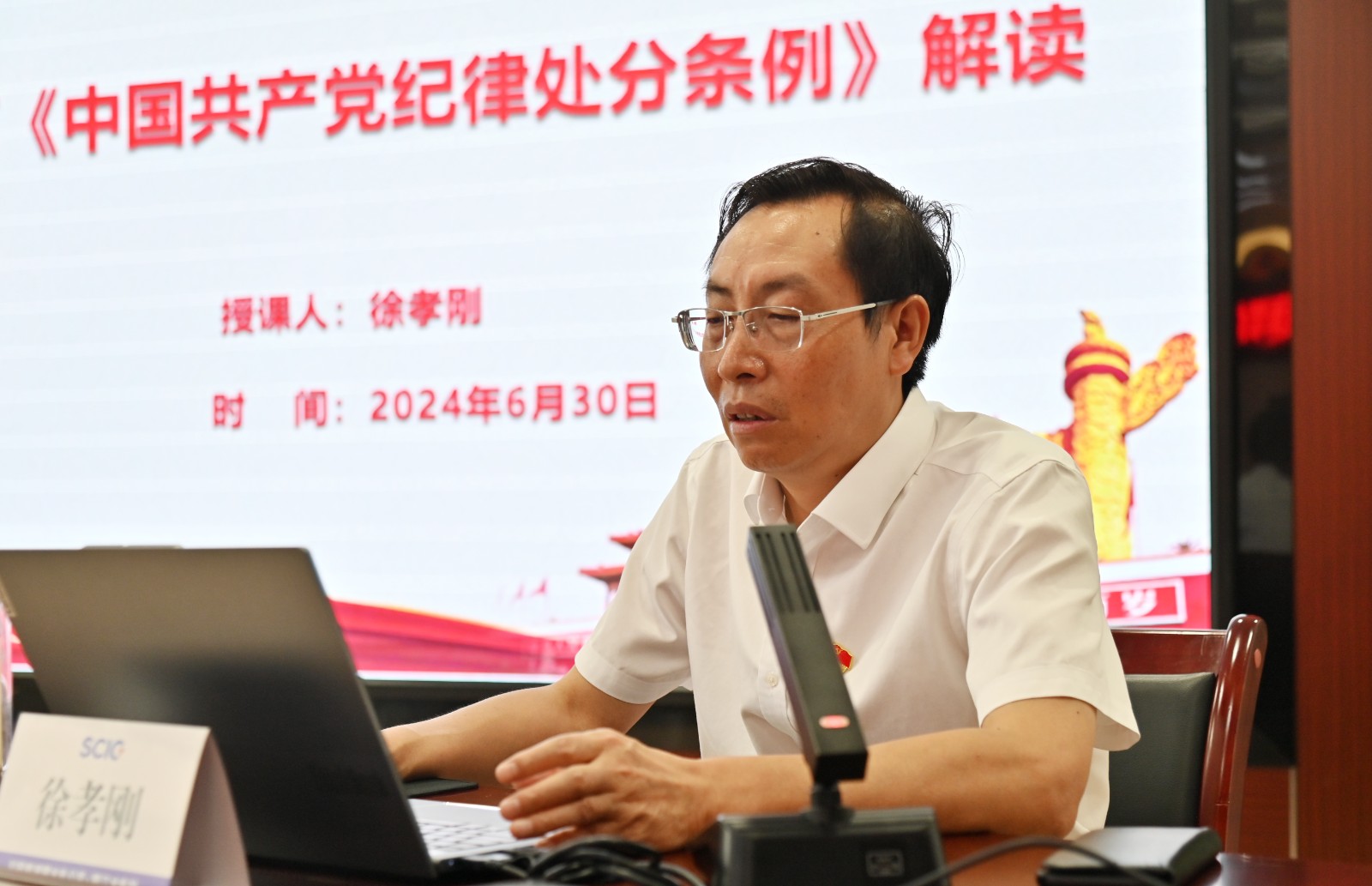 在全黨開(kāi)展黨紀(jì)學(xué)習(xí)教育和黨的103歲生日來(lái)臨之際,按照川投能源黨委和攀水電黨總支的安排部署,6月30日上午,川投能源副總經(jīng)理、攀水電公司黨總支書(shū)記、董事長(zhǎng)徐孝剛講授了黨紀(jì)學(xué)習(xí)教育紀(jì)律黨課并宣講省委十二屆五次全會(huì)精神,公司全體員工、參建單位負(fù)責(zé)人及黨員代表共計(jì)50余人參加。