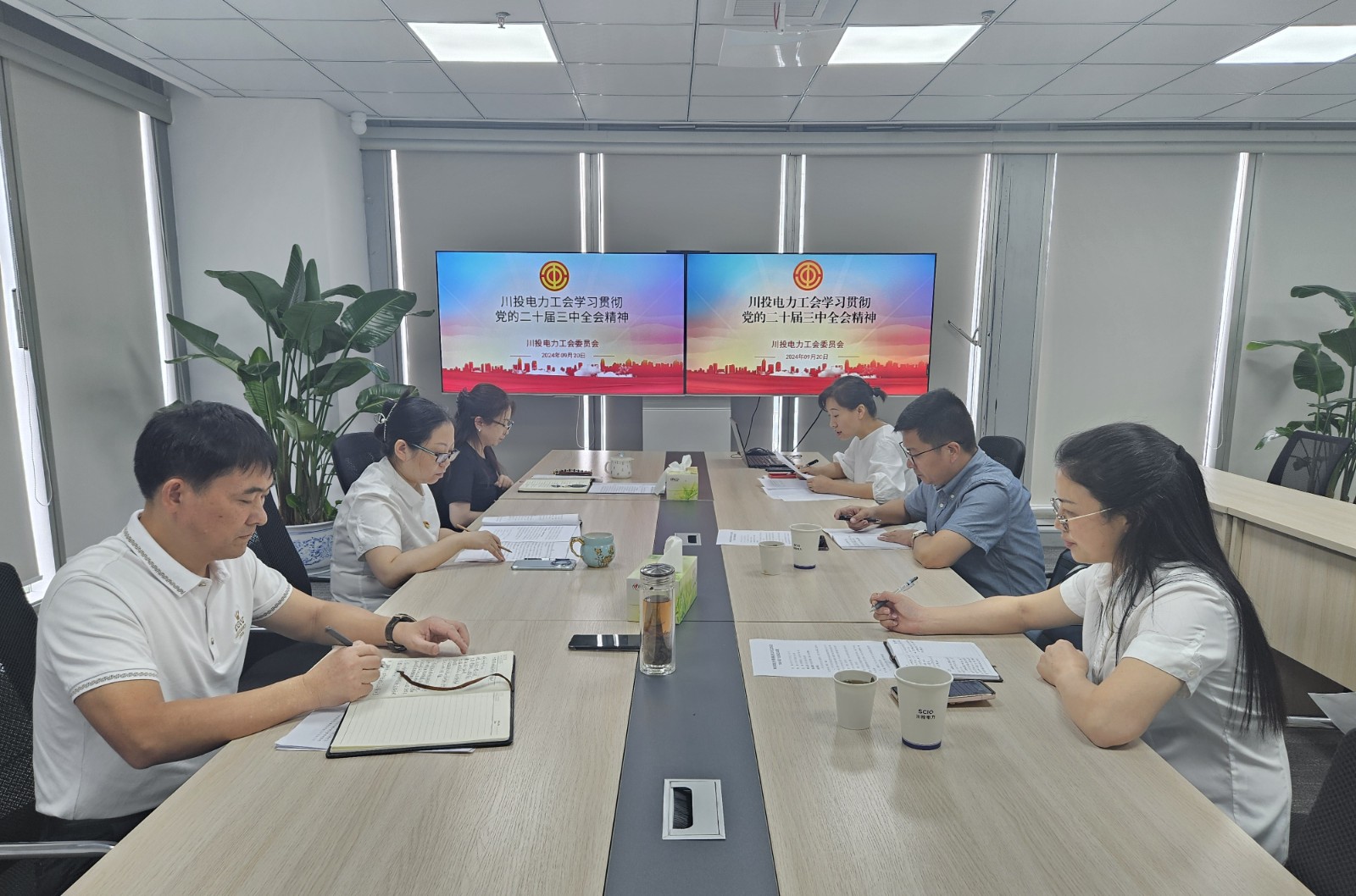 按公司黨委統(tǒng)籌安排和相關(guān)要求,為深入學習宣傳貫徹黨的二十屆三中全會精神,推動全會精神落地落實,9月20日,川投電力工會召開會議,專題傳達學習黨的二十屆三中全會精神。會議由公司黨委副書記、工會主席楊鑫主持,工會委員及相關(guān)成員參加學習。
