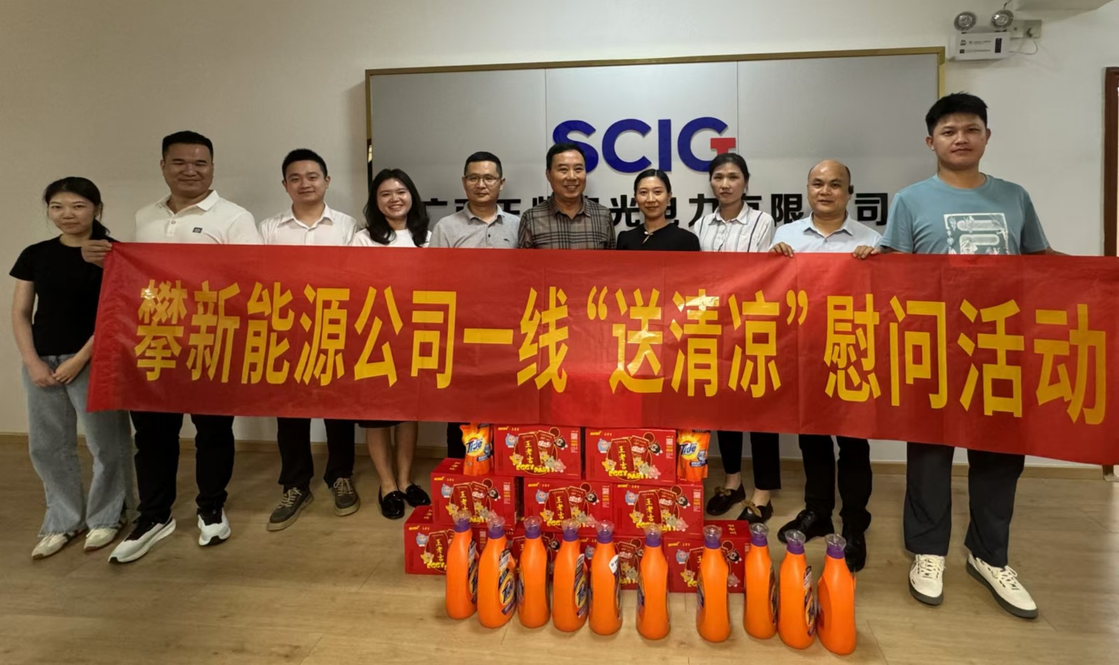 炎夏送清涼,溫情暖人心。攀新能源公司為進一步做好防暑降溫工作,深切關懷在項目現(xiàn)場作業(yè)的一線職工職業(yè)健康,確保現(xiàn)場安全生產(chǎn),組織開展了“送清涼”一線慰問活動。攀新能源公司黨支部委員、總經(jīng)理周軍帶隊“送清涼”慰問小組,依次前往廣西農(nóng)光公司、桂平光伏電站、廣西融安公司光伏發(fā)電站項目現(xiàn)場,為辛勤工作的勞動者們送去清涼與關懷。