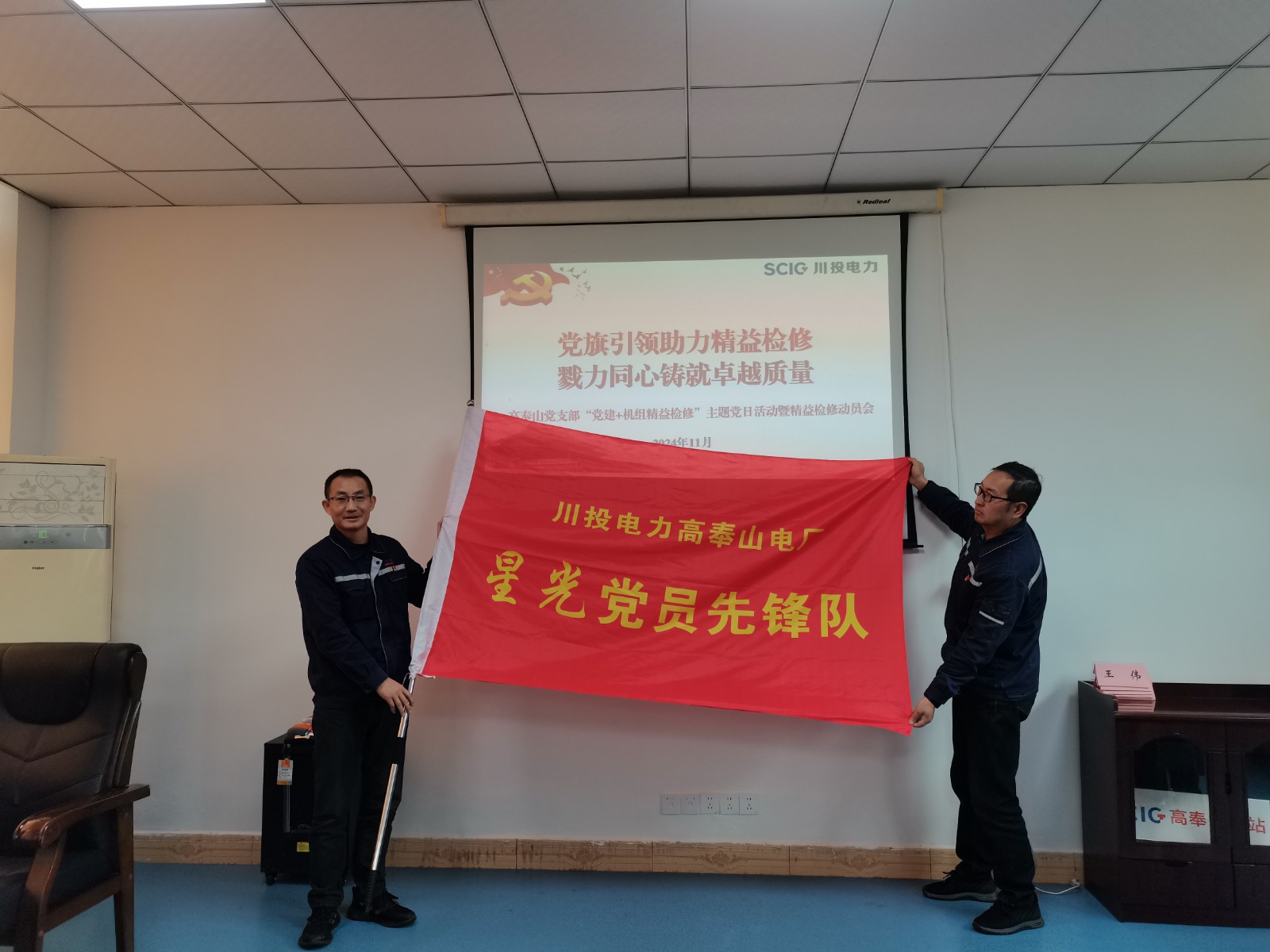 圍繞機(jī)組定期檢修及技術(shù)改造等重點工作任務(wù),高奉山黨支部精心策劃,構(gòu)建“1+2+3+4”專項活動。即圍繞檢修工作召開1次主題黨日活動;設(shè)置2個黨員創(chuàng)精品檢修項目——“發(fā)電機(jī)定子線圈、鐵芯測溫電阻技改”“發(fā)電機(jī)出口銅排技改”;成立3個攻堅引領(lǐng)團(tuán)隊——星光黨員先鋒隊、星光黨員攻堅隊、星光青年服務(wù)隊;建立4個檢修質(zhì)量責(zé)任區(qū)——發(fā)電機(jī)區(qū)、水輪機(jī)區(qū)、電氣區(qū)、轉(zhuǎn)輪區(qū)。王橋分別為3支攻堅引領(lǐng)團(tuán)隊授旗,4位檢修質(zhì)量責(zé)任區(qū)責(zé)任人承諾,認(rèn)真履行“責(zé)任在我肩上、質(zhì)量在我手中”的莊嚴(yán)承諾。
