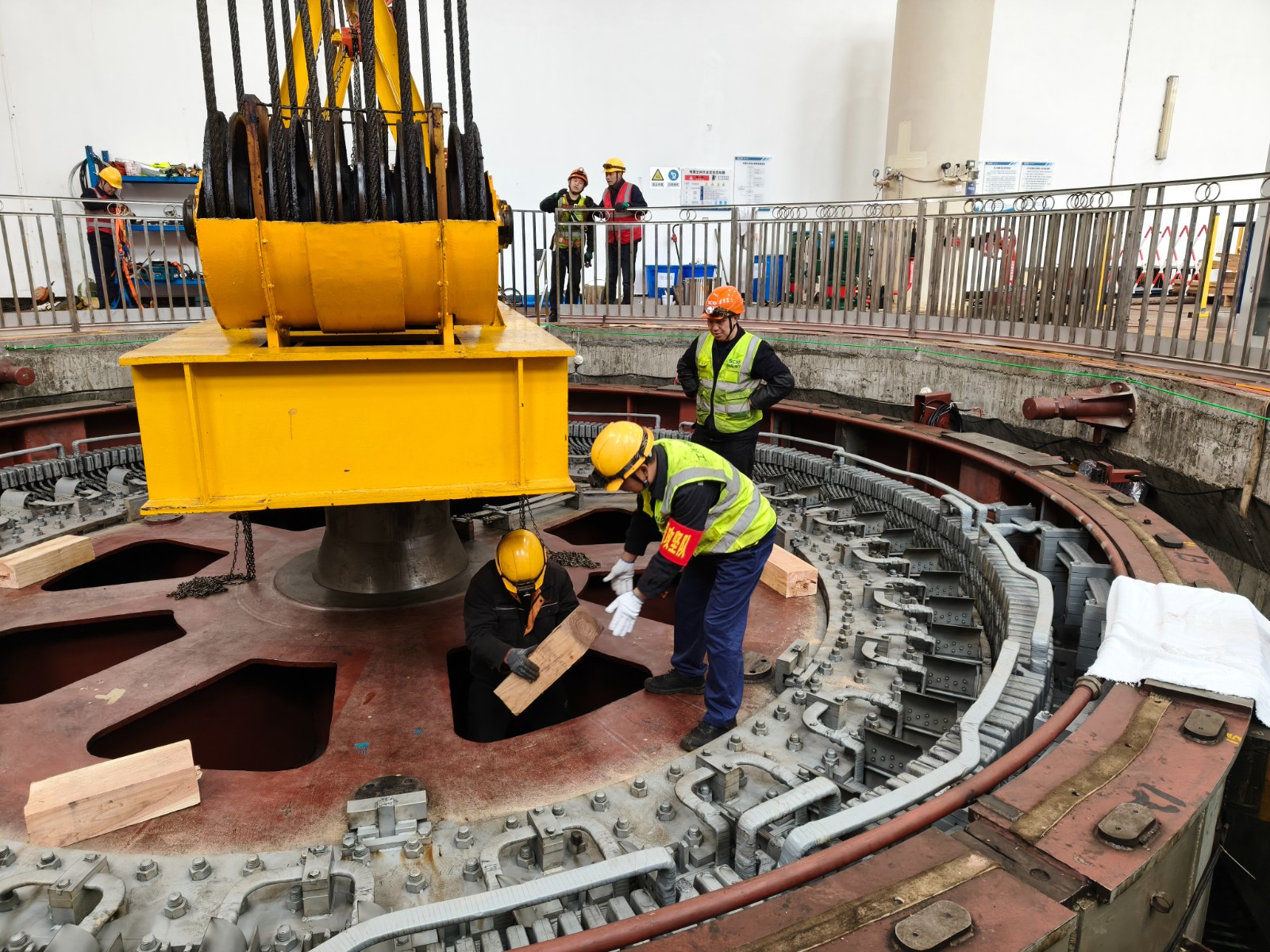 機組轉輪的成功吊裝,標志著機組A級檢修回裝工作正式開始,水輪機導水機構、水發(fā)聯(lián)軸回裝等后續(xù)工作將有序開展。檢修人員進一步緊密配合、科學組織、精細施工、嚴把質量關,圓滿完成機組檢修任務。