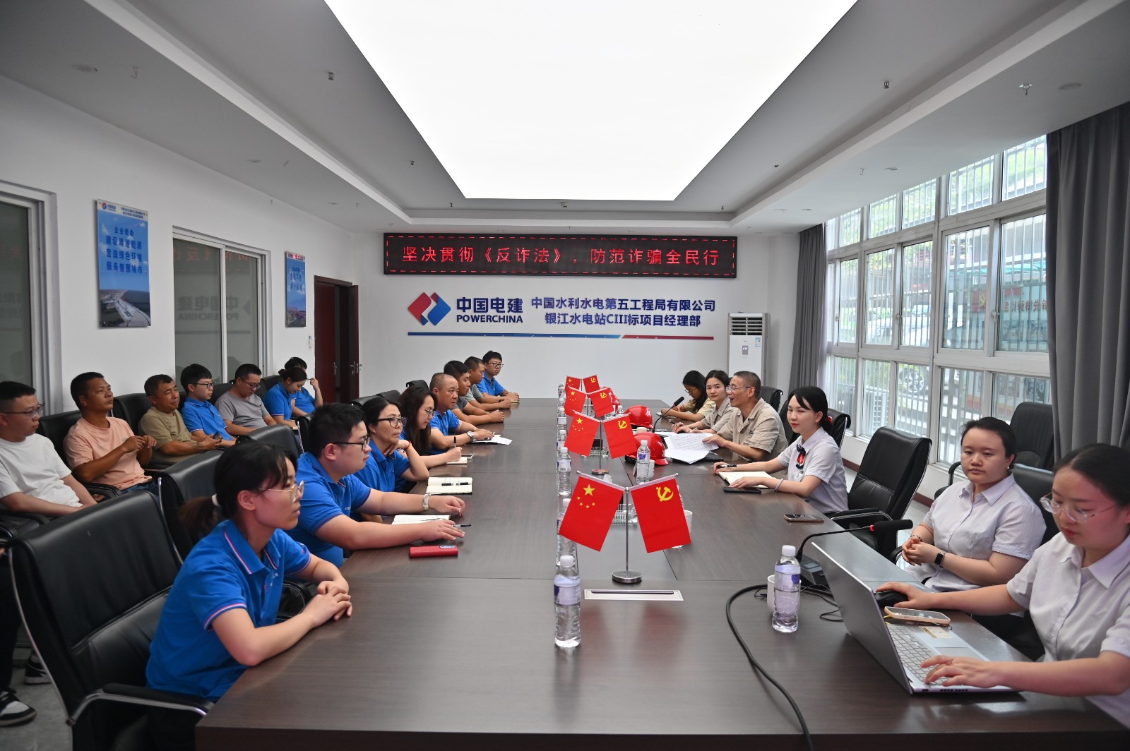 按照省金融辦及省國資委相關(guān)要求,川投能源所屬攀水電公司結(jié)合自身實際,于6月19日聯(lián)合中國銀行金曦苑支行到銀江水電站參建單位工地開展防范非法金融活動相關(guān)宣講。中國銀行金曦苑支行行長羅欣及相關(guān)人員,攀水電公司資金財務(wù)部、綜合管理部及相關(guān)人員,水電五局銀江項目部員工及建設(shè)一線工人共計30余人參加活動。