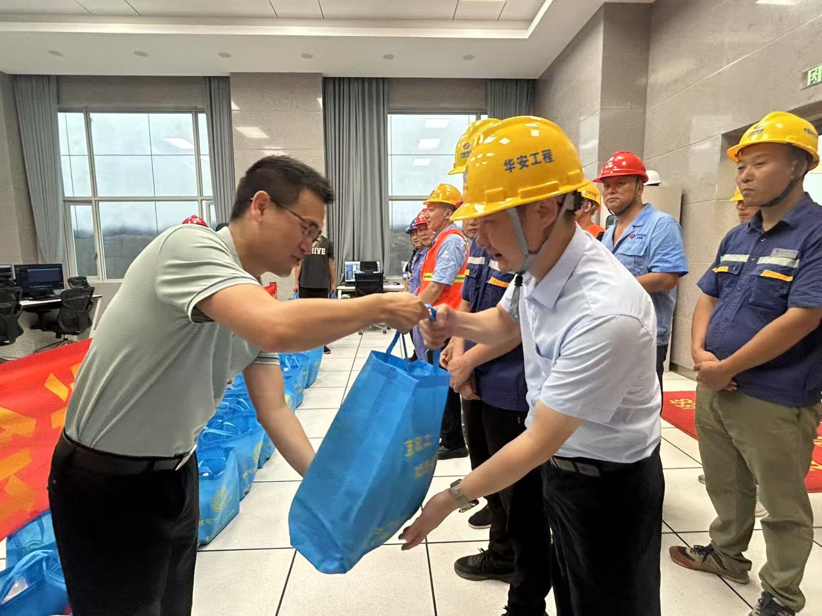 張平一行在現(xiàn)場了解了銀江水電站工程建設(shè)和安全生產(chǎn)情況,向一線人員送上了洗發(fā)露、沐浴露、洗衣液等清涼物資300余份?!肮蛠淼牟粌H是清涼,更是暖心!”大家紛紛表示,雖然天氣炎熱,但感受到了“娘家人”的貼心關(guān)懷,一定會克服高溫困難,時刻牢記“安全第一、生命至上”理念,以更加飽滿的熱情投入工作中。