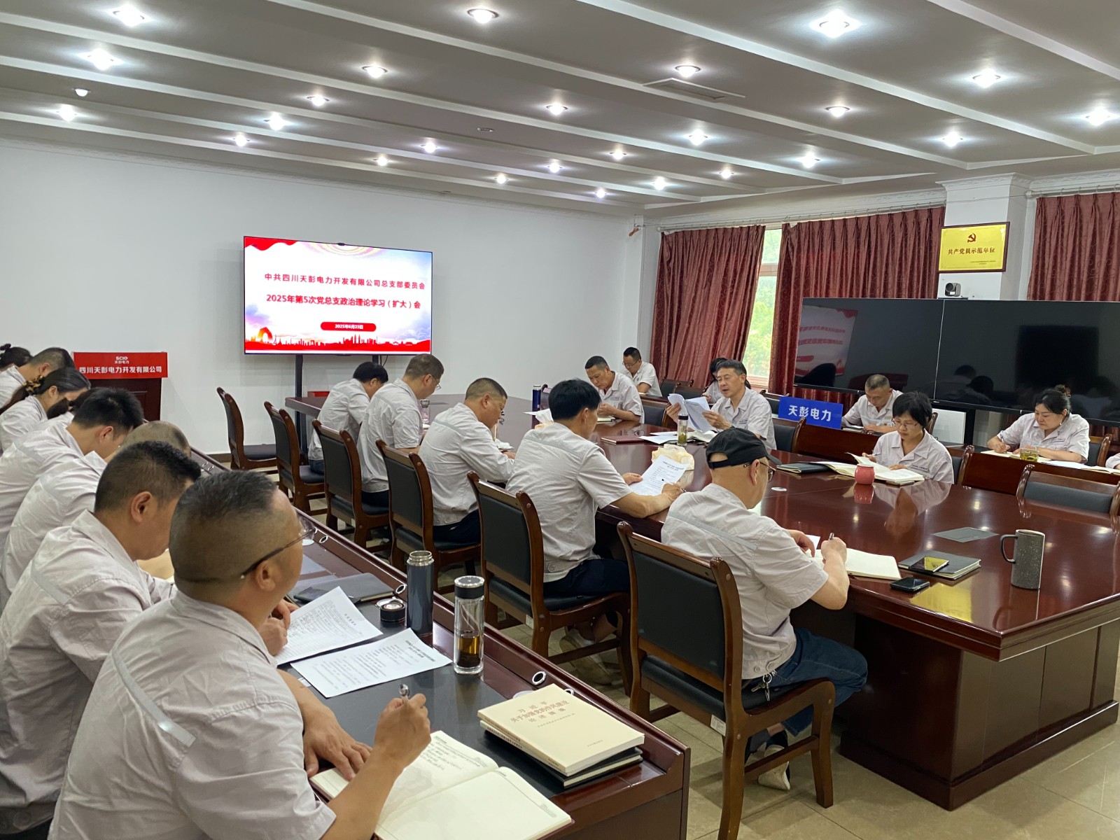 近日,天彭電力黨總支召開2025年第5次政治理論學習(擴大)會議,由公司黨總支書記、執(zhí)行董事、總經理劉紅兵主持,公司領導班子、黨員及關鍵崗位人員參加學習。