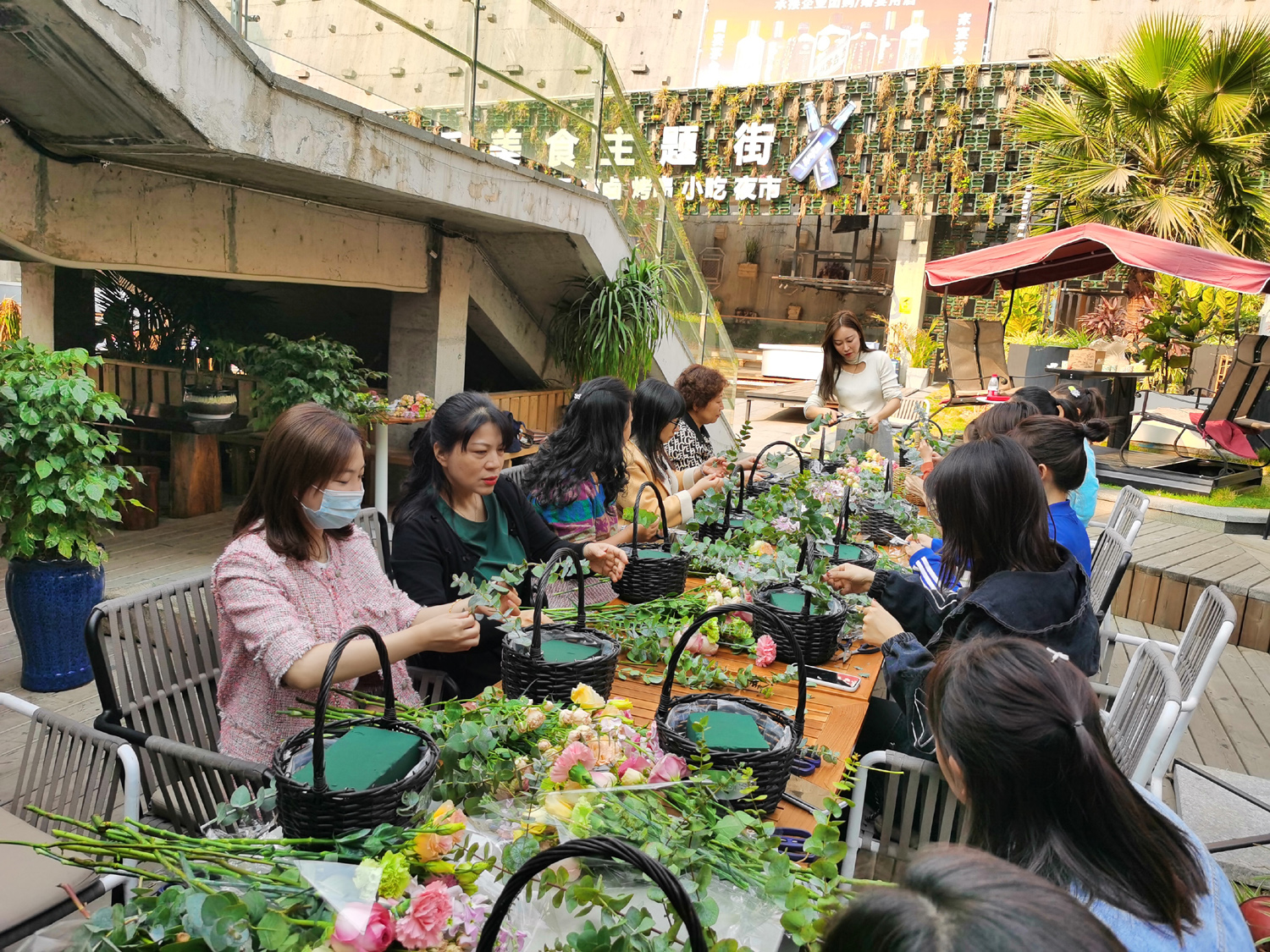 專業(yè)的花藝老師為大家講授了鮮花的選花、色彩搭配、造型、保鮮方法和插花技巧,大家自己精心設(shè)計后,一盆盆細致精美的插花作品逐漸完工。