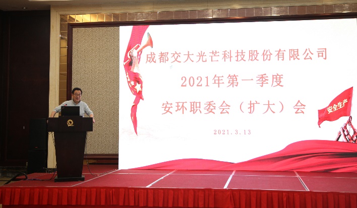 交大光芒黨總支書記、安環(huán)職委會主任、總經(jīng)理劉成輝對2021年安環(huán)職重點工作進(jìn)行部署,并安排了近期安全環(huán)保大檢查工作。劉成輝指出,公司上下要認(rèn)真落實疫情防控常態(tài)化要求,仔細(xì)梳理安全生產(chǎn)、環(huán)境保護(hù)、職業(yè)健康工作,落實風(fēng)險分級管控和隱患排查整改雙重預(yù)防機制,將安全關(guān)口前移,保障公司經(jīng)營發(fā)展平安,并與各部門分管領(lǐng)導(dǎo)和負(fù)責(zé)人簽訂了2021年度安環(huán)職目標(biāo)責(zé)任書。