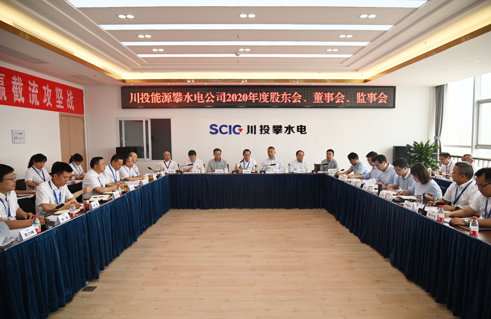 4月27日,川投能源攀水電公司召開第五屆九次董事會、五屆四次監(jiān)事會和2020年度股東會,川投能源、長江設(shè)計院、華潤電力、攀國投四家股東單位代表、董事、監(jiān)事及相關(guān)人員共十余人出席會議。川投能源副總經(jīng)理、攀水電公司黨總支書記、董事長徐孝剛主持會議。
