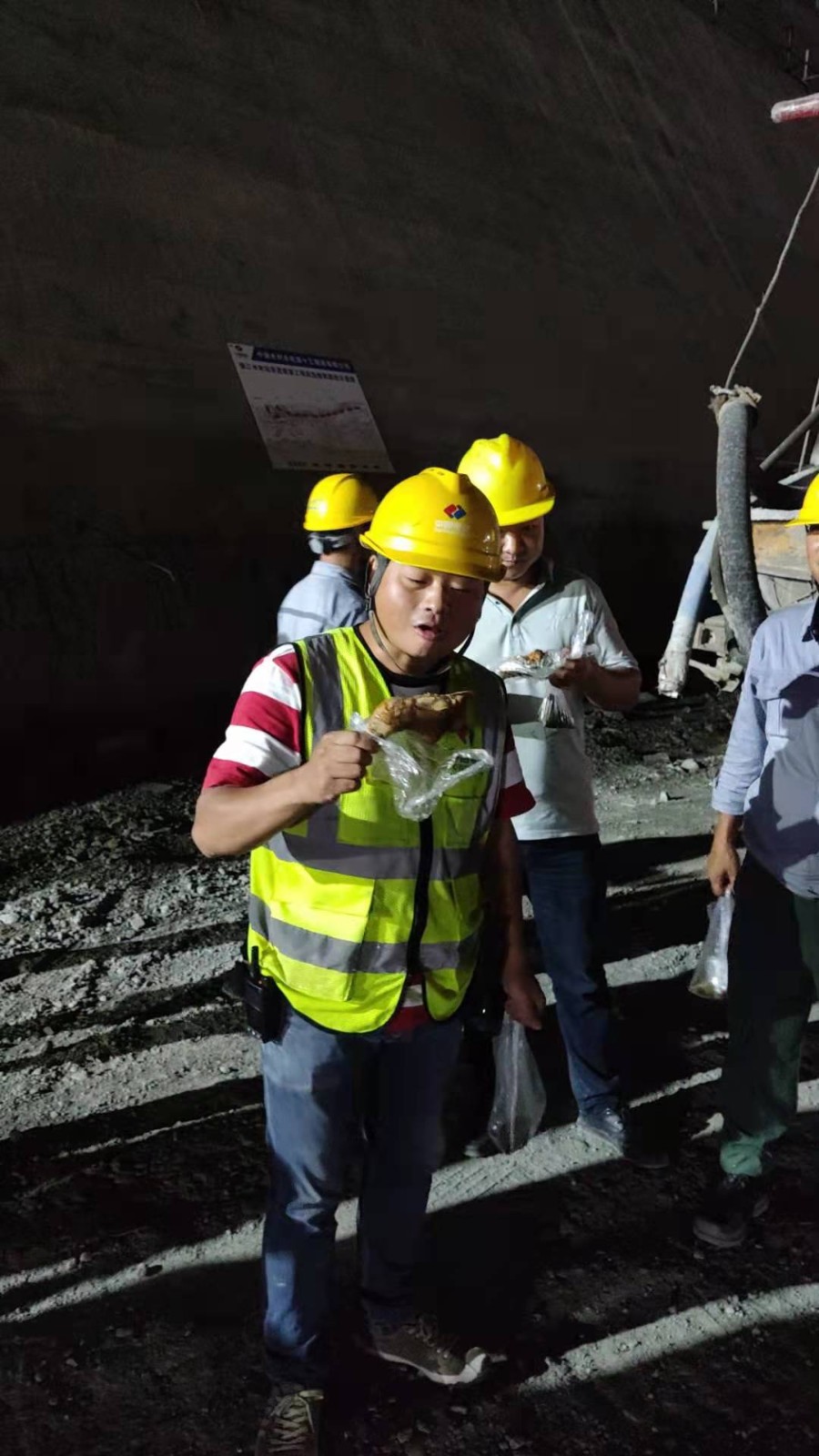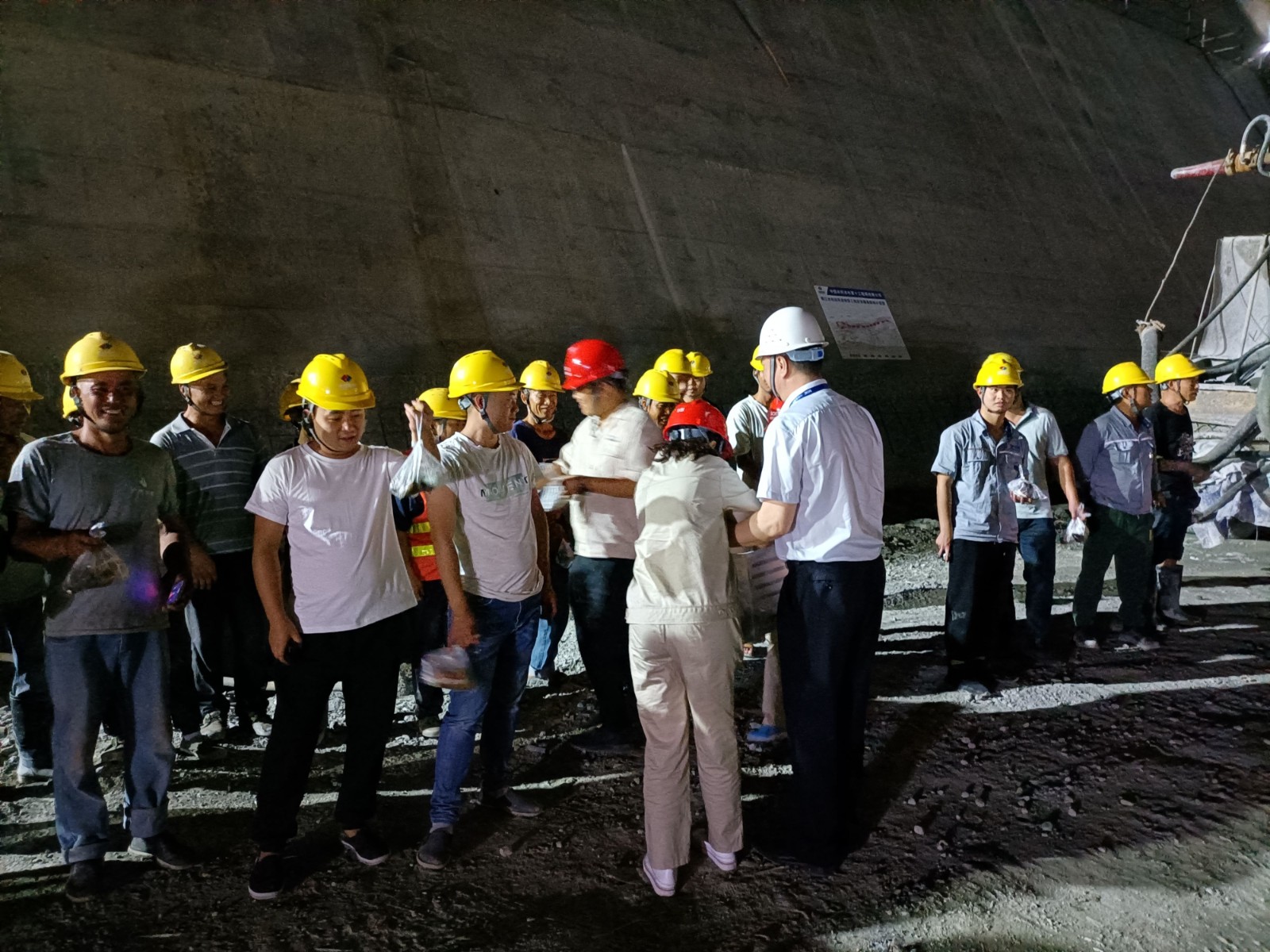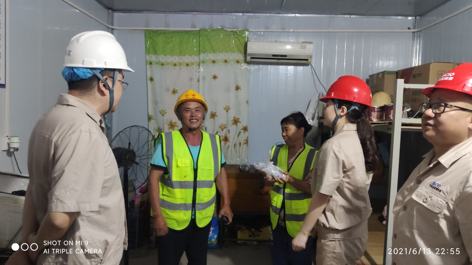 6月13日端午節(jié)前夕深夜,公司值班領(lǐng)導(dǎo)、黨總支委員、董事會(huì)秘書、工會(huì)主席鄧勇,總經(jīng)理助理唐伽帶領(lǐng)值班人員,對(duì)銀江水電站工地現(xiàn)場(chǎng)防洪度汛值班點(diǎn)位及施工現(xiàn)場(chǎng)進(jìn)行了檢查;公司志愿者服務(wù)隊(duì)共計(jì)10余人對(duì)節(jié)日期間堅(jiān)守在銀江水電站工地夜間施工的一線人員進(jìn)行了慰問。