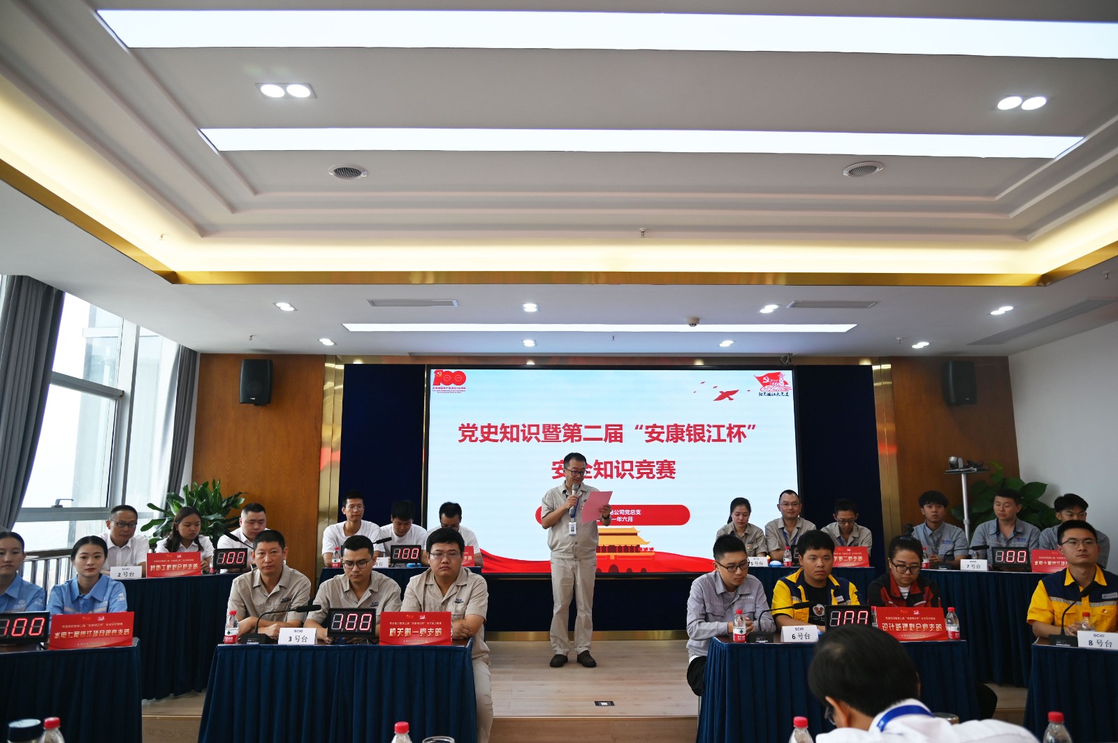 6月30日上午,在中國共產(chǎn)黨成立100周年華誕前夕,也是第20個安全生產(chǎn)月活動圓滿收官的日子里,攀水電公司黨總支在公司2620會議室開展黨史知識暨第二屆“安康銀江杯”安全知識競賽活動,來自“陽光銀江大黨建”六個聯(lián)建支部和兩個機關(guān)支部全部組隊參賽,公司及各參建單位領(lǐng)導、全體黨員職工、聯(lián)建支部代表共60余人參加活動。