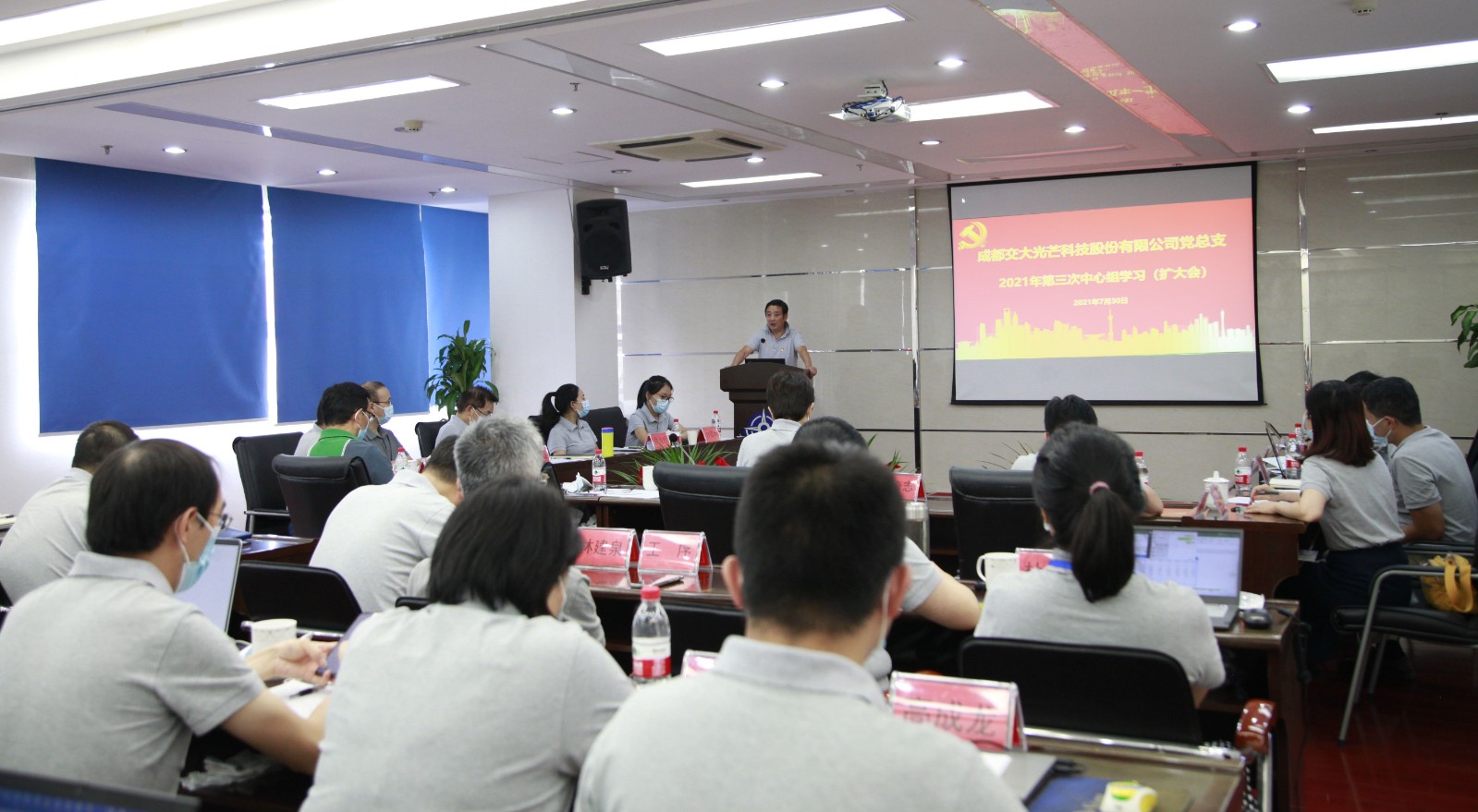 會上,劉成輝帶領(lǐng)大家共同學習了《中國共產(chǎn)黨四川省第十一屆委員會第九次全體會議公報》,重溫了習近平總書記在慶祝中國共產(chǎn)黨成立100周年大會上的講話,并做習近平總書記“七一”重要講話精神做專題宣講。他指出,要切實把思想和行動統(tǒng)一到習近平總書記“七一”重要講話精神上,與黨史學習教育相結(jié)合,推動黨史學習教育往深里走、往實里做、往心里去,堅持原原本本學、融會貫通學、聯(lián)系實際學、把學習成果轉(zhuǎn)化為工作的動力和實效。