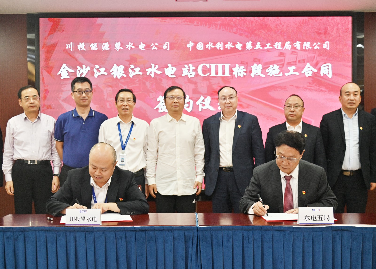 隨后,吳巍嶼與李福林代表雙方簽署銀江水電站CIII標(biāo)段施工合同。集團(tuán)公司經(jīng)營管理部劉厚榮、王楓,攀水電公司各部門負(fù)責(zé)人,水電五局相關(guān)人員參加本次簽約儀式。