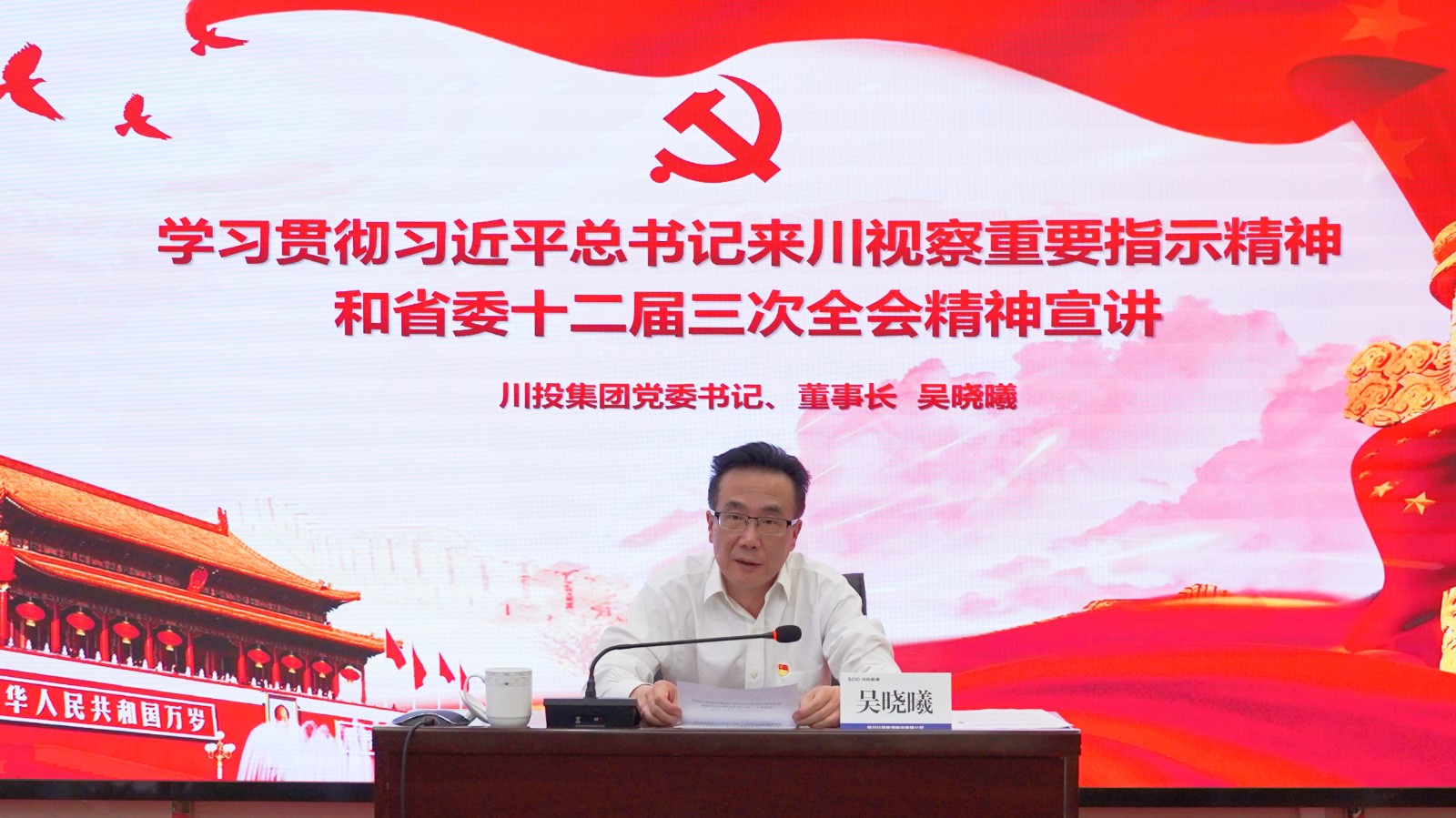 吳曉曦立足當(dāng)前國情省情,結(jié)合川投能源改革發(fā)展現(xiàn)狀,圍繞習(xí)近平總書記來川視察重要指示精神和省委十二屆三次全會(huì)精神進(jìn)行了深入闡釋和系統(tǒng)解讀。他指出,習(xí)近平總書記來川視察重要指示精神是對(duì)四川工作最權(quán)威、最深刻、最有力的科學(xué)指導(dǎo)。要深刻領(lǐng)會(huì)習(xí)近平總書記對(duì)四川的深切關(guān)懷,凝心鑄魂強(qiáng)化忠誠;要自覺擔(dān)當(dāng)習(xí)近平總書記賦予的戰(zhàn)略使命,增強(qiáng)機(jī)遇意識(shí)和進(jìn)取精神;要全面落實(shí)習(xí)近平總書記部署的重點(diǎn)任務(wù),全力以赴拼經(jīng)濟(jì)、搞建設(shè)、抓發(fā)展;要認(rèn)真落實(shí)習(xí)近平總書記對(duì)主題教育的最新部署,以主題教育為牽引全面加強(qiáng)黨的建設(shè)。