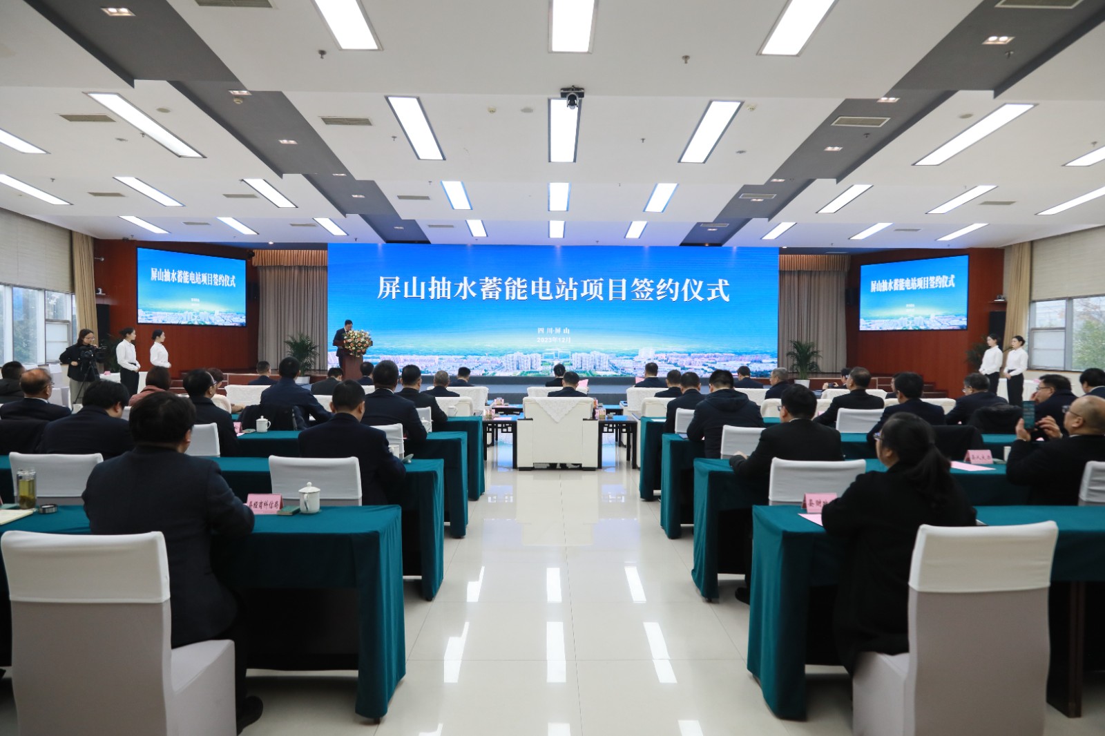 12月29日,屏山縣人民政府與四川川投能源股份有限公司、雅礱江水電開(kāi)發(fā)公司、葛洲壩集團(tuán)聯(lián)合體簽訂屏山抽水蓄能電站項(xiàng)目投資合作協(xié)議。川投集團(tuán)黨委書(shū)記、董事長(zhǎng),川投能源董事長(zhǎng)吳曉曦;川投集團(tuán)黨委副書(shū)記、副董事長(zhǎng)、總經(jīng)理李文志;宜賓市委副書(shū)記曾令舉;市政府副市長(zhǎng)周文宇;川投集團(tuán)副總經(jīng)理張昊;葛洲壩集團(tuán)三峽建設(shè)公司副總經(jīng)理許華;葛洲壩集團(tuán)市場(chǎng)投資開(kāi)發(fā)部副總經(jīng)理李博;中國(guó)電建集團(tuán)成勘院副總經(jīng)理鞠其鳳;川投能源黨委書(shū)記、副董事長(zhǎng)、總經(jīng)理?xiàng)詈椋淮ㄍ都瘓F(tuán)總經(jīng)理助理、戰(zhàn)投部部長(zhǎng)田傳平;雅礱江水電開(kāi)發(fā)公司副總工程師范林;市能源局副局長(zhǎng)邵睿;屏山縣委書(shū)記代軍;縣委副書(shū)記、縣長(zhǎng)趙丹;縣人大常委會(huì)主任冷遠(yuǎn)林;縣政協(xié)主席林敏;縣委副書(shū)記羅昕出席簽約儀式。