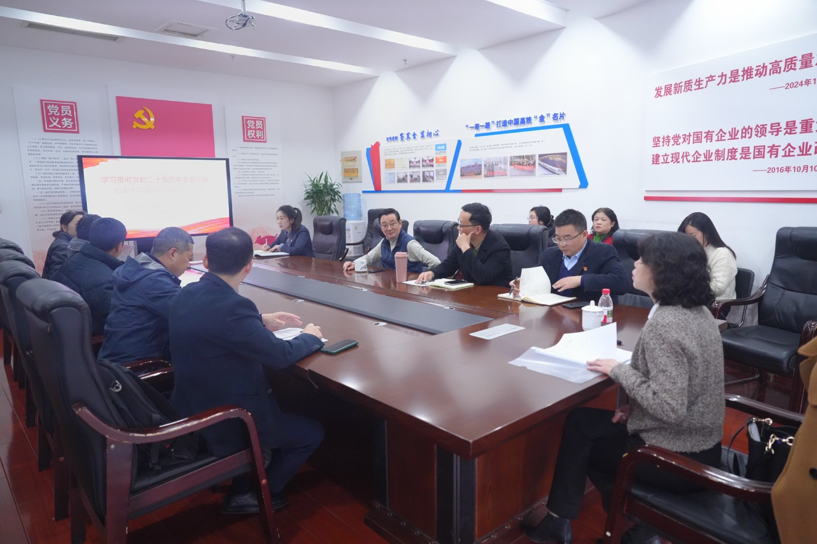 12月12日下午,川投能源黨委委員、財務總監(jiān)劉好赴交大光芒專題宣講黨的二十屆四中全會及省委十二屆八次全會精神,交大光芒公司黨總支書記、常務副總經(jīng)理王濤主持會議。