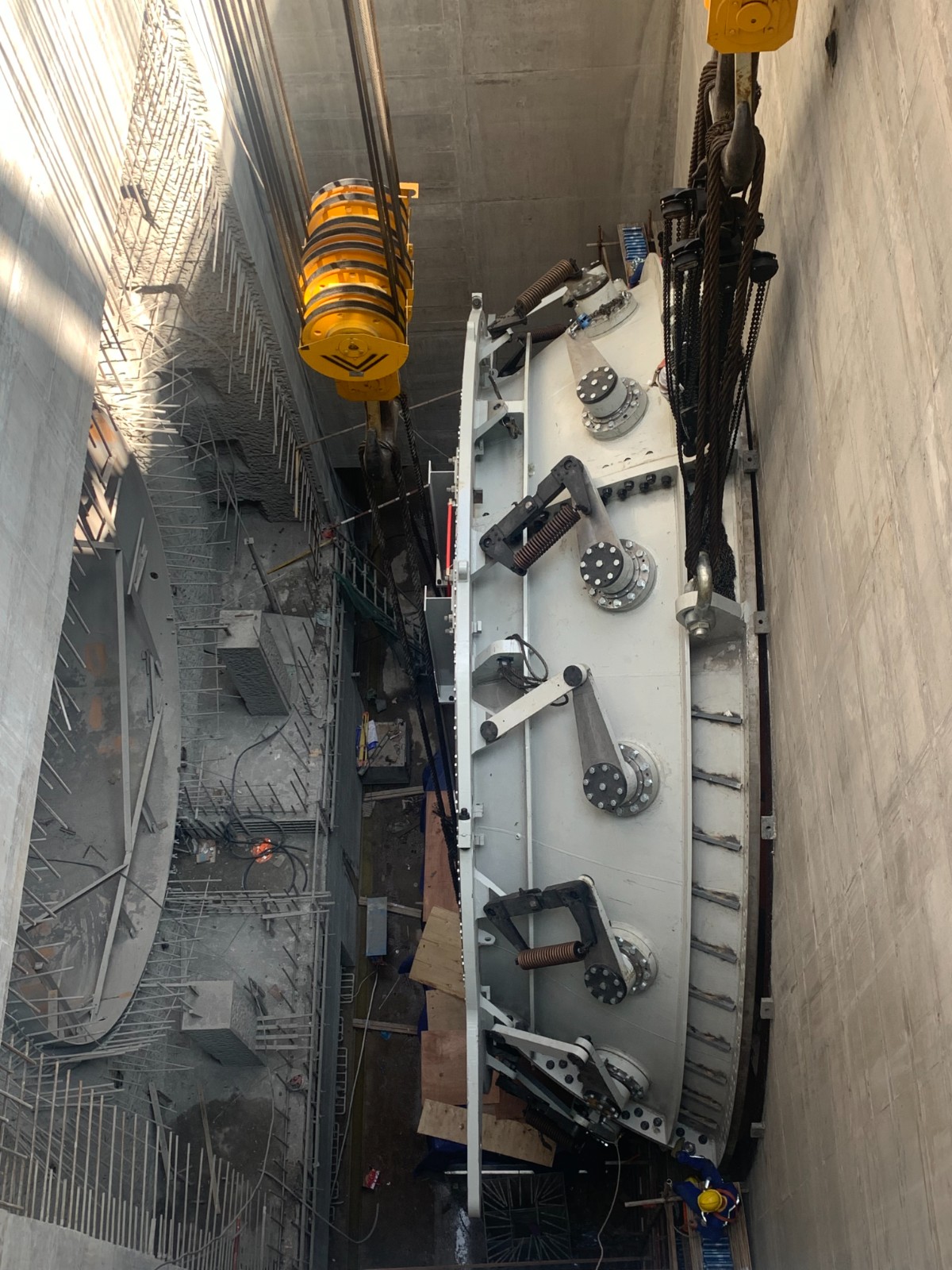 川投能源副總經(jīng)理,攀水電公司黨總支書記、董事長徐孝剛親臨現(xiàn)場指揮,各參建相關(guān)單位主要負(fù)責(zé)人落實(shí)具體工作,認(rèn)真開展吊裝前安全技術(shù)交底,組織專業(yè)人員對(duì)導(dǎo)水機(jī)構(gòu)、廠房橋機(jī)及起重吊裝工具進(jìn)行全面檢查,吊裝過程中嚴(yán)格按照規(guī)定程序操作,實(shí)時(shí)調(diào)整設(shè)備位置,歷經(jīng)8個(gè)小時(shí),1#機(jī)組導(dǎo)水機(jī)構(gòu)順利平穩(wěn)翻身,安全吊裝就位。