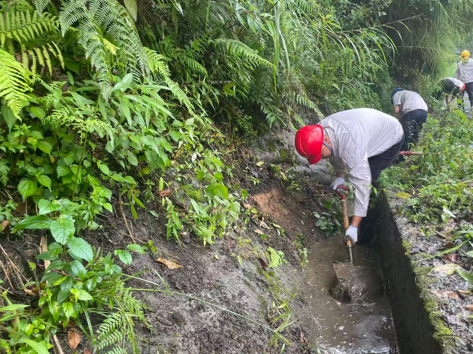 在暴雨預(yù)警拉響的第一時間,這支黨員先鋒隊就踏上了巡查征程。當(dāng)發(fā)現(xiàn)排水溝淤積隱患時,副廠長、老黨員張坤祥二話不說,就跳進了滿是淤泥的排水溝進行清淤,他說:“淤泥增加1厘米,防汛壓力就重1分!”他的話語樸實無華,卻道出了一名共產(chǎn)黨員的責(zé)任與擔(dān)當(dāng)。暴雨如注時,值守人員頂著傾盆大雨沖進廠房,在電閃雷鳴中對關(guān)鍵設(shè)備進行雨中特巡,雨水順著安全帽檐流進衣領(lǐng),浸透了工作服,卻澆不滅他們守護機組安全的堅定信念。他們用沾滿淤泥的雨靴和浸透雨水的工裝,在防汛一線筑起了一道堅不可摧的“紅色堤壩”。截至目前,腳基坪電廠累計開展12次雨前、雨中、雨后特巡,清理淤積點13次。
