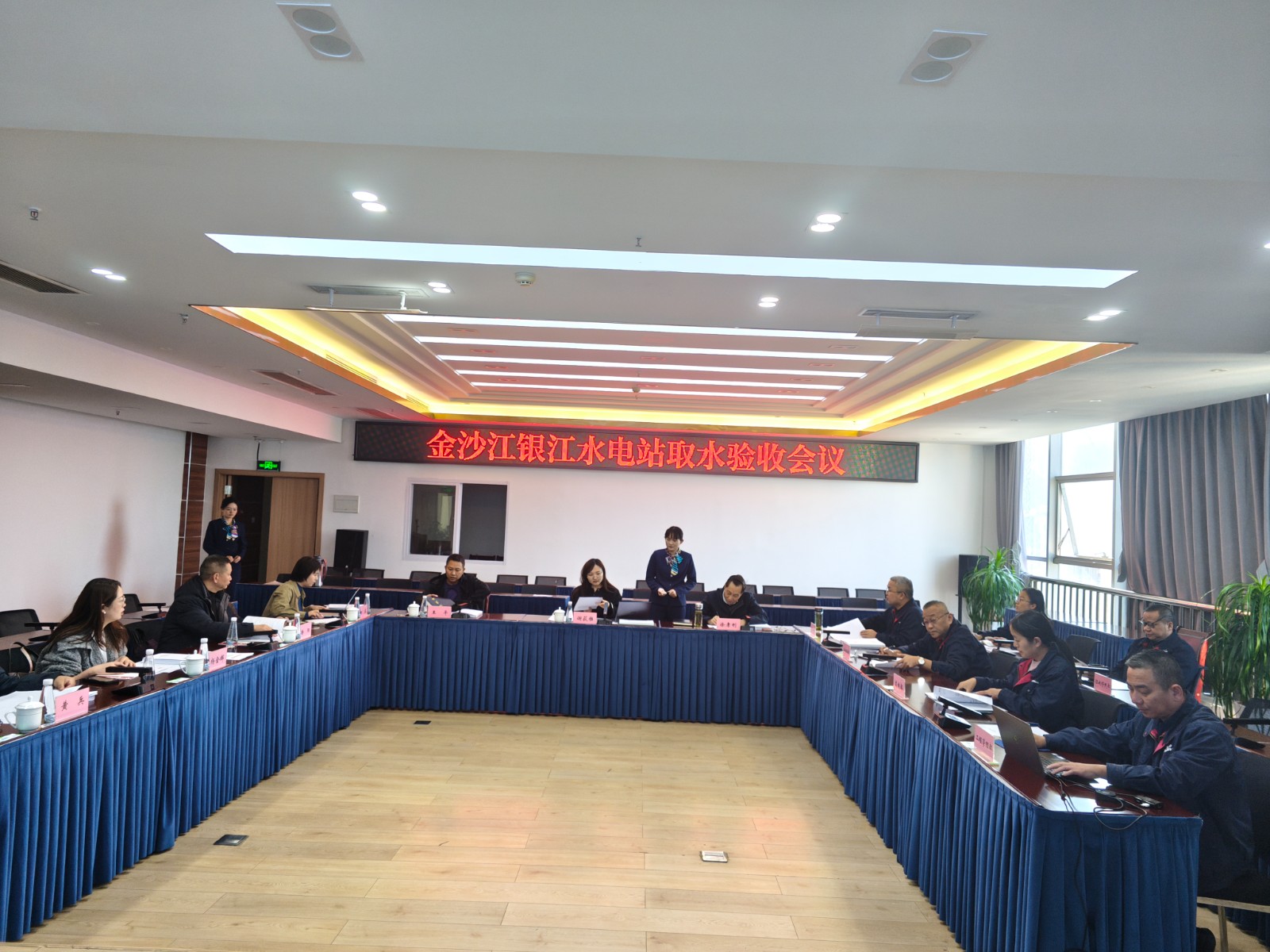 隨后,驗(yàn)收組召開(kāi)驗(yàn)收會(huì)議。會(huì)議期間,驗(yàn)收組詳細(xì)審閱了銀江水電站取水驗(yàn)收工作報(bào)告,聽(tīng)取了公司工程建設(shè)及取水設(shè)施相關(guān)情況匯報(bào),對(duì)取水申請(qǐng)批復(fù)意見(jiàn)落實(shí)情況進(jìn)行復(fù)核,并與各參會(huì)單位進(jìn)行了充分的討論和交流,形成了金沙江銀江水電站取水驗(yàn)收意見(jiàn),一致同意金沙江銀江水電站通過(guò)取水驗(yàn)收,在完善取水報(bào)告有關(guān)資料后核發(fā)取水許可證。