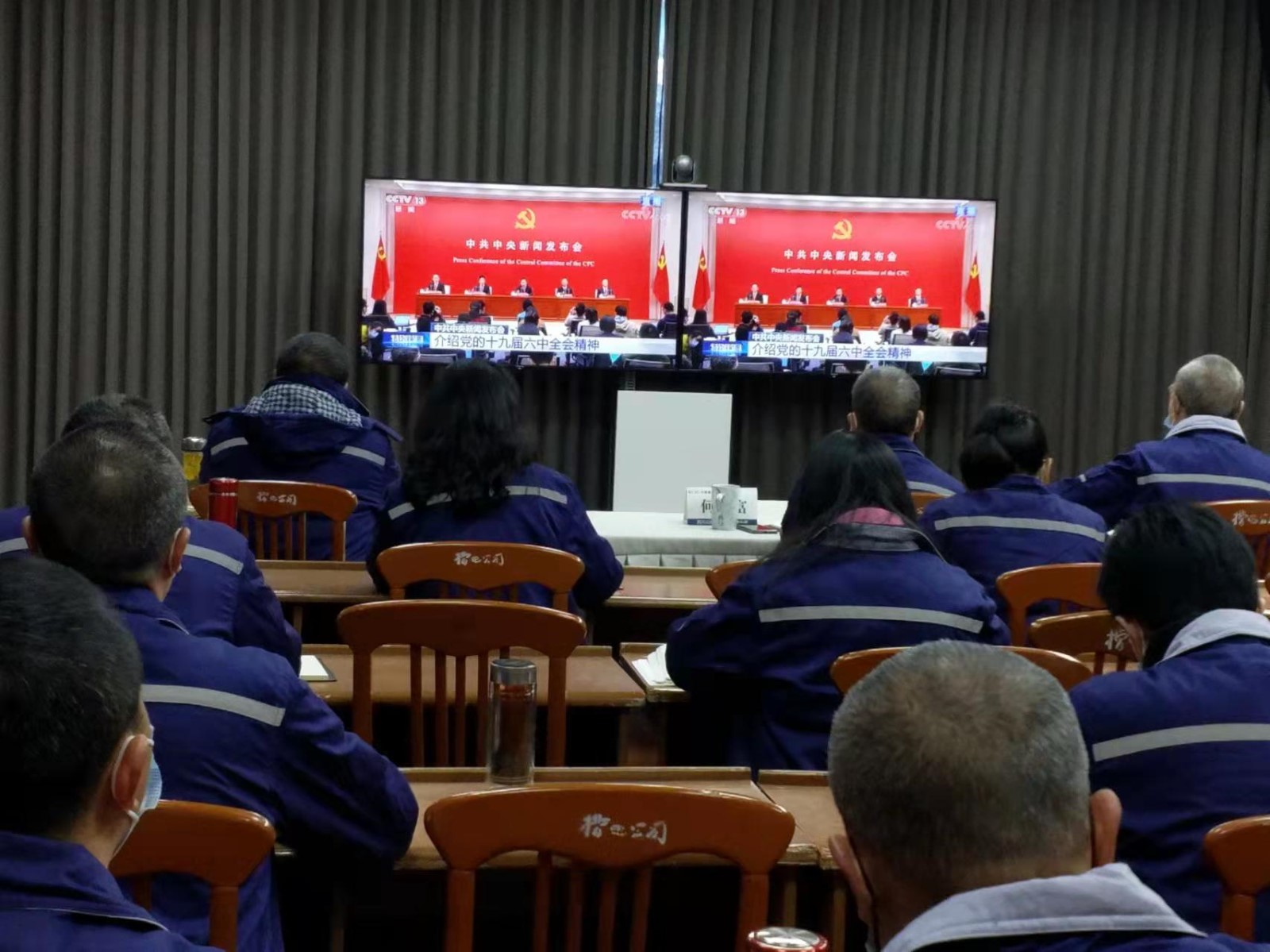 11月12日,川投電力根據(jù)集團黨委、川投能源黨委要求,同時嚴格按照疫情防控要求,組織班子成員集中觀看、本部和各電廠全體員工共100余人自主收看等多形式收聽收看中共中央十九屆六中全會精神新聞發(fā)布會。